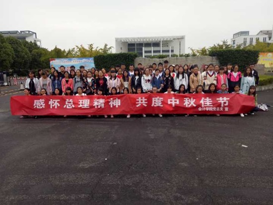 (通讯员袁飞报道)为了使留校学生欢度中秋佳节,10月4日,会计学院自管会和关工委组织开展了“感怀总理精神,欢度中秋佳节”活动,会计学院党总支书记郭德怀、副书记罗斌以及部分学工人员和400余名外省学生参加了活动。活动分为参观周恩来纪念馆和中秋茶话会等两个部分。