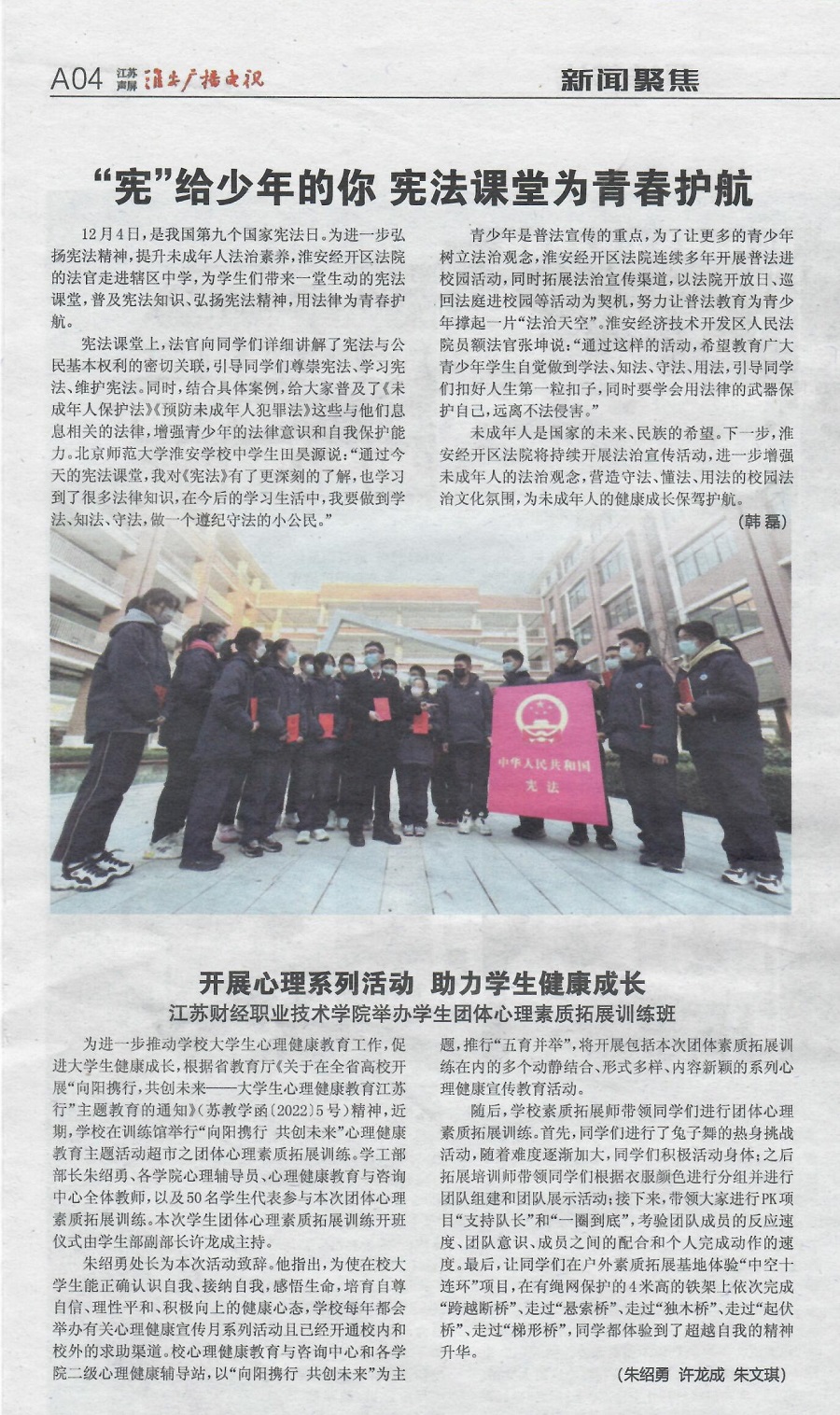 江苏财经职业技术学院举办学生团体心理素质拓展训练班