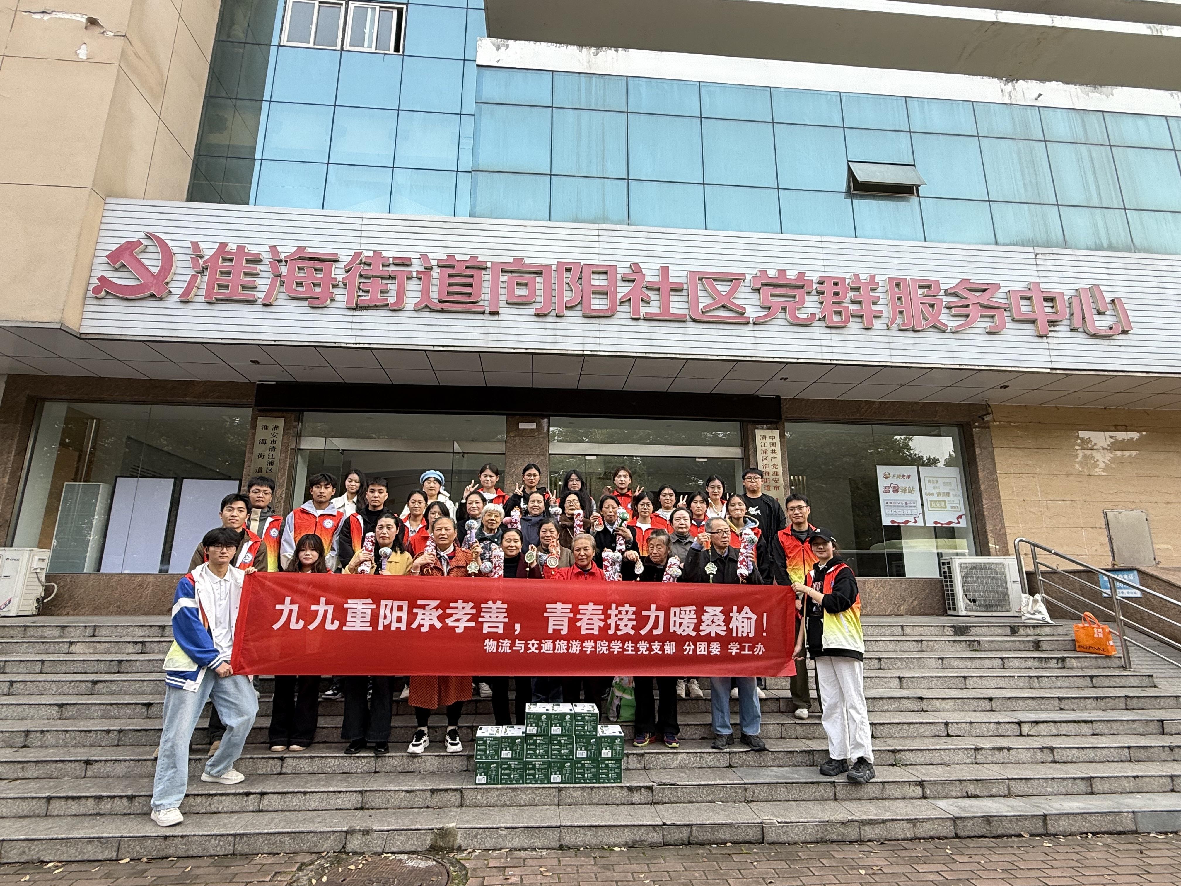 为大力弘扬中华民族尊老、敬老、爱老的传统美德,全面落实立德树人根本任务与“五育并举”融合育人工作体系,引导学生在社会实践中增强社会责任感、提升品德修养,10 月 29 日下午,物流与交通旅游学院在清江浦区淮海街道向阳社区成功开展“情暖重阳,关爱无限”重阳节社会实践活动。物流与交通旅游学院师生、“笃行”志愿服务队成员共同参与此次活动,用实际行动为社区老人送去温暖与关怀。