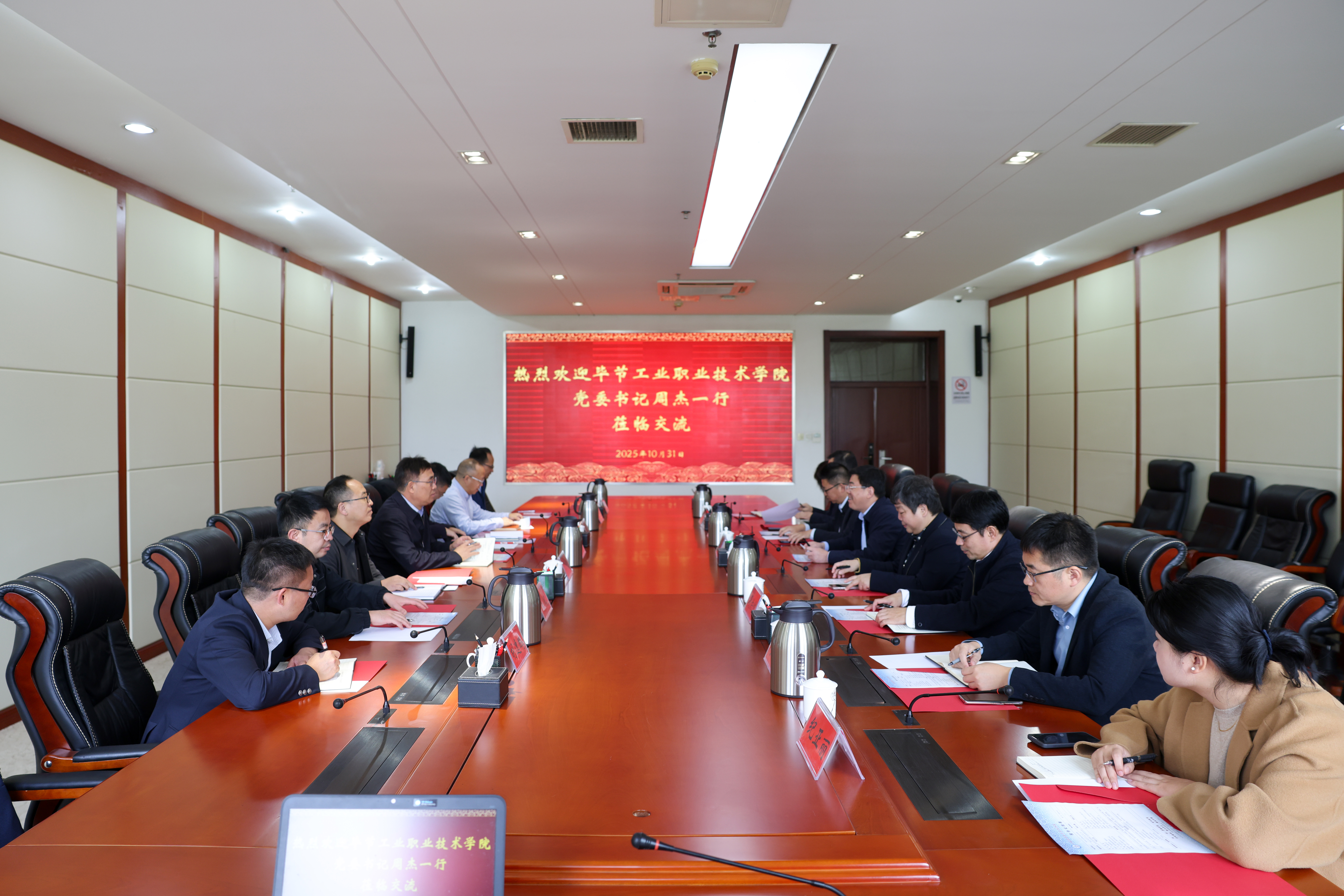 会上,闫超栋对毕节工业职业技术学院党委书记周杰一行到访表示热烈欢迎,并向来宾介绍了我校的校史情况、办学特色、发展展望等,并就进一步推动统一战线“地域+领域”组团式帮扶毕节相关工作交换意见。闫超栋表示,我校将充分发挥自身优势特色,与毕节工业职业技术学院开展多元化、全方位的合作,不断推动共建工作可持续高质量发展。周杰对我校在实训基地、校园文化、产教融合、专业建设及人才培养等方面的成果和经验给予高度评价,对我校倾情支援工作和热情接待表示感谢。他对毕节工业职业技术学院的发展历程、办学特色、合作领域等方面作了简要介绍,并在今后合作共建领域上提出期待。双方与会部门负责同志围绕具体领域深层次、高质量合作进行了热烈的研讨。