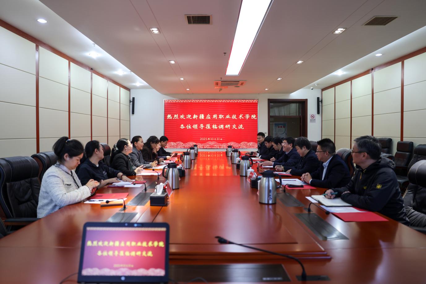 10月31日下午,新疆应用职业技术学院党委书记陈梅兰率党委委员、科研处处长张文汇,副院长孔祥静(援疆),副院长乔向东(援疆)等一行来校考察交流。校党委书记闫超栋,党委副书记杜萍,党委委员、副校长鲍建青及办公室、教务处、教师工作部等相关部门负责人出席座谈。会议由闫超栋主持。