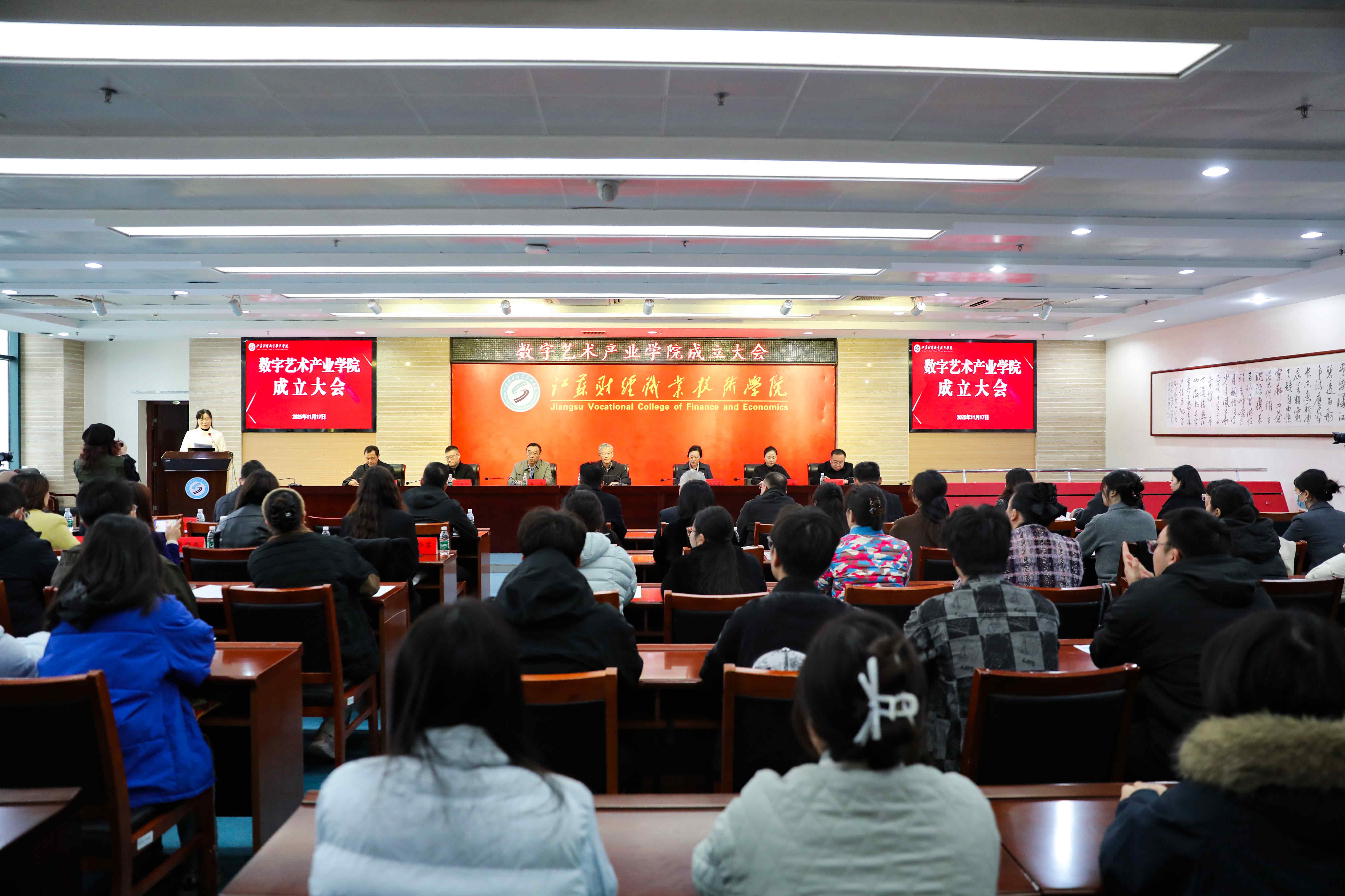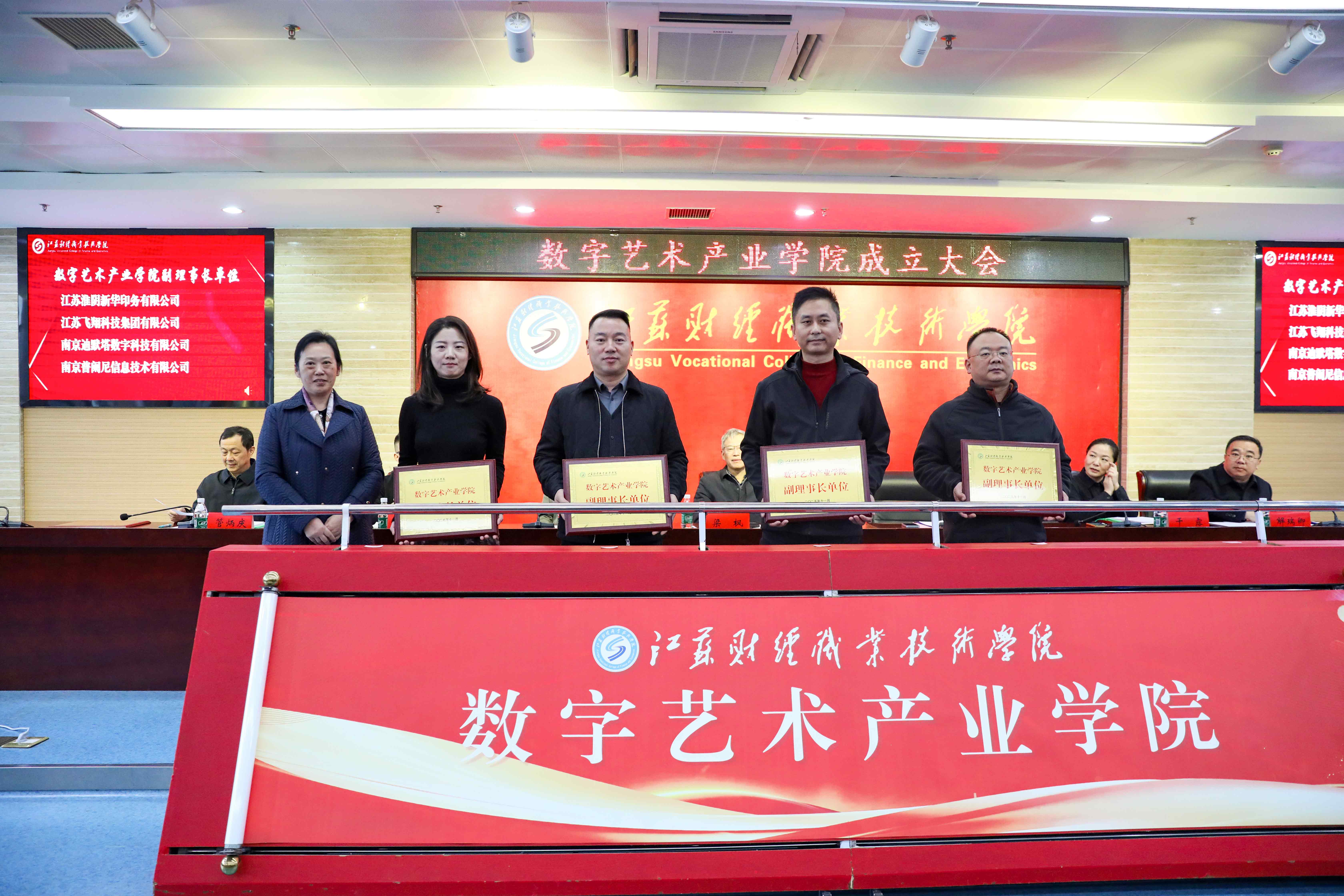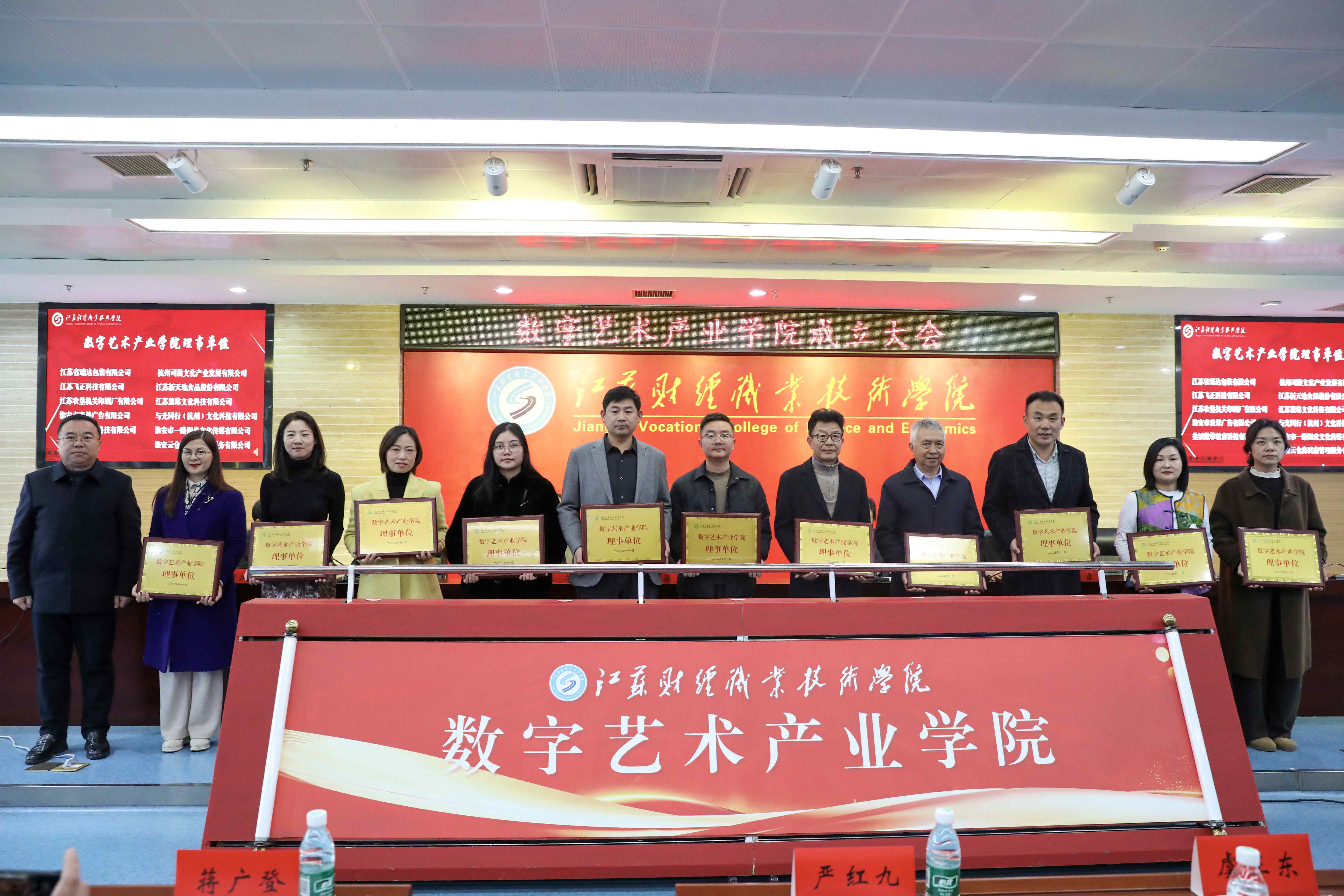 为积极响应国家产教融合战略部署,深入贯彻《国务院办公厅关于深化产教融合的若干意见》《职业教育产教融合赋能提升行动实施方案》等文件要求,11月17日下午,我校成功举办数字艺术产业学院成立大会。本次大会汇聚了网易有道信息技术(杭州)有限公司、淮安市美术馆(书画院)、淮商文化研究会、淮安市印刷行业协会、南京迪默塔数字科技有限公司、南京普阑尼信息技术有限公司、杭州司晨文化产业发展有限公司等20余家政府、行业、企业等单位代表,学校党委委员、副校长梁枫、鲍建青应邀出席,法律与人文艺术学院全体教师和学生代表100余人参加会议,大会由法律与人文艺术学院党总支书记任李主持。
