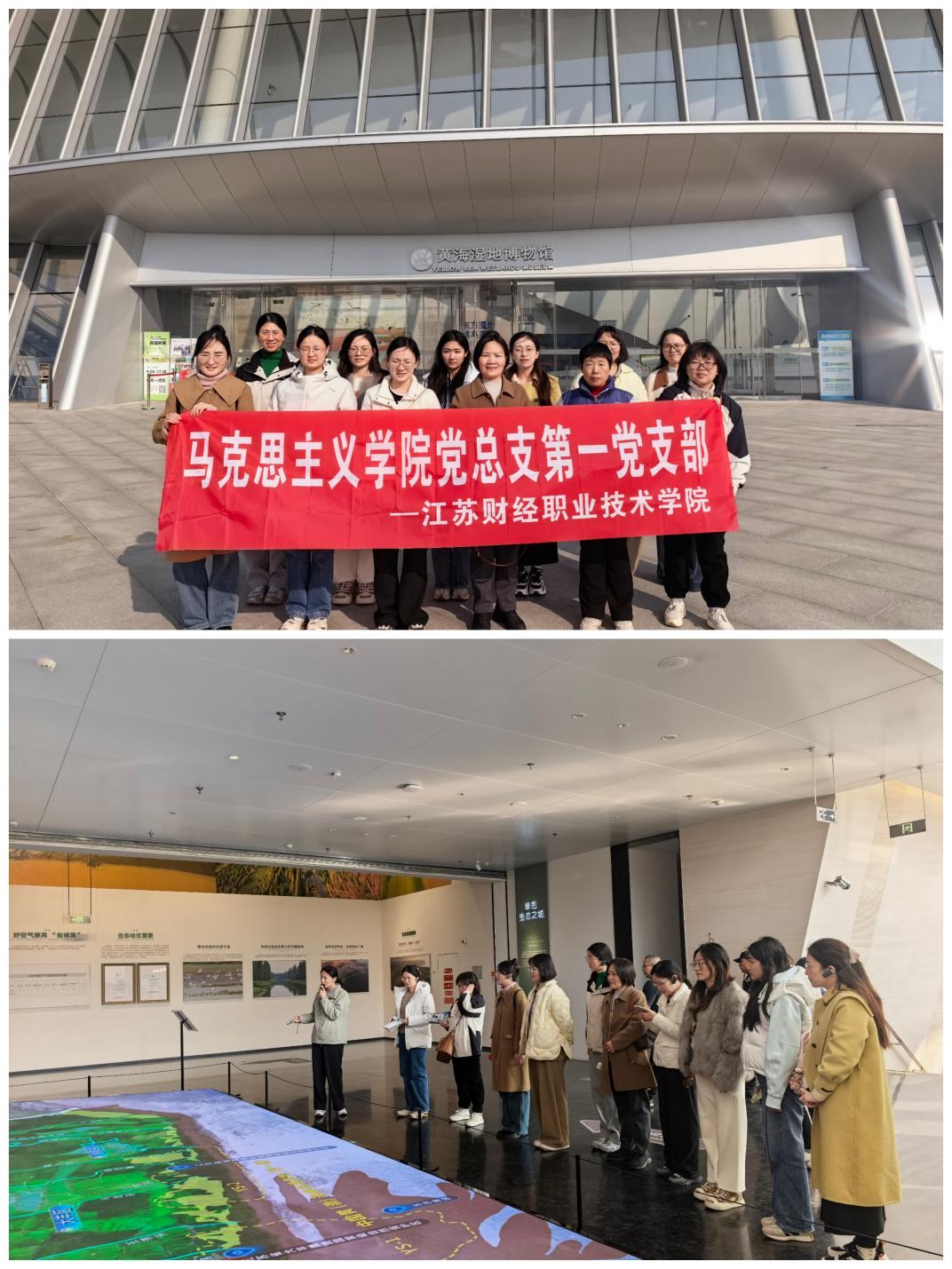第二站“守望地球之肾,感悟生态文明”:全体党员教师步入中国黄海湿地博物馆,开展沉浸式学习。通过专业讲解,支部教师依次参观了“海陆天成”“天际旅程”“湿地家园”等主题展厅,系统了解湿地的生态价值、生物多样性保护成就以及盐城市生态文明建设的丰硕成果。深刻体会到“绿水青山就是金山银山”的绿色发展理念,增强了服务地方生态文明建设的责任意识。