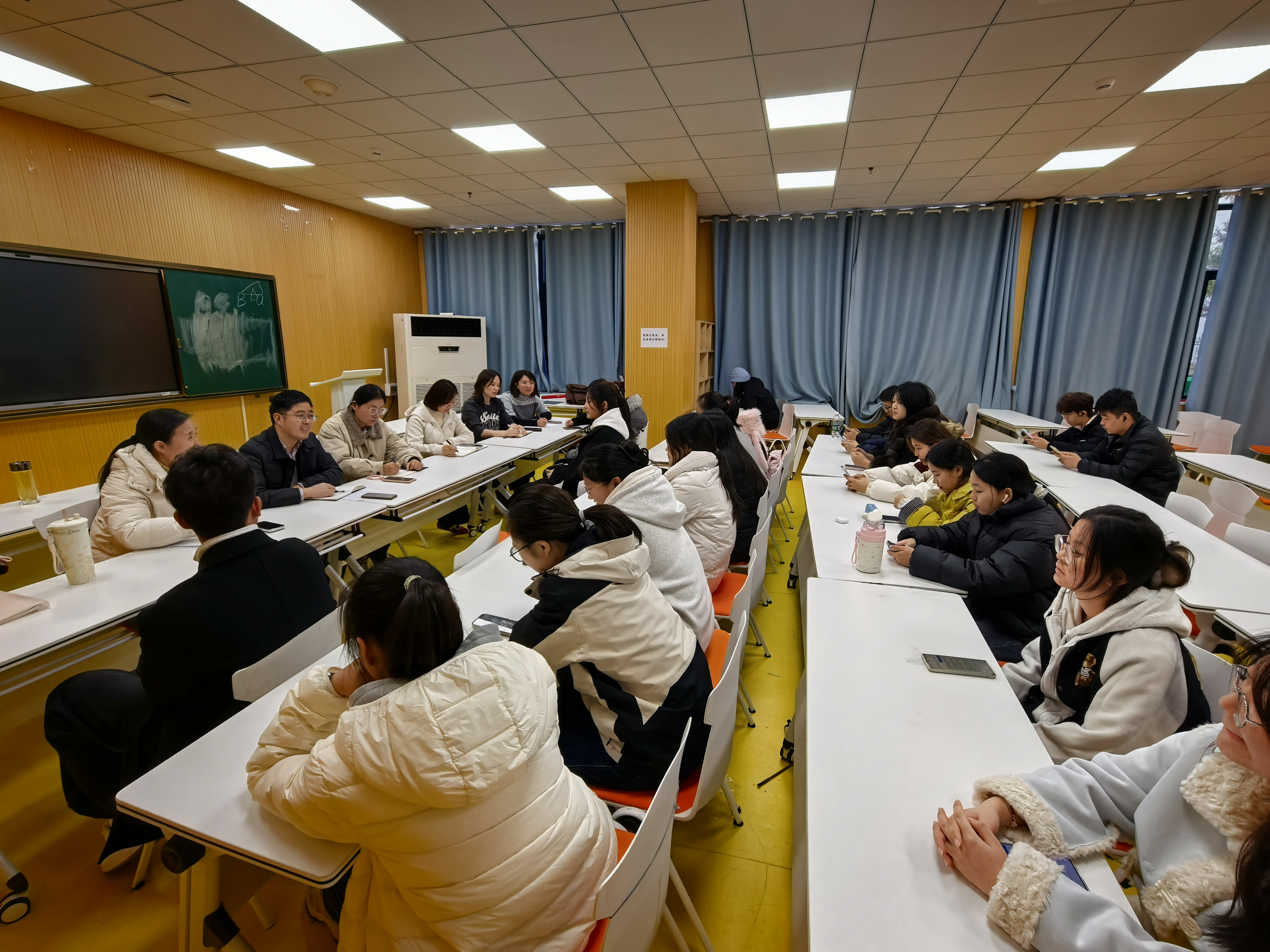 为深入了解学生思想困惑和成长需求,进一步推动“大思政课”建设走深走实,切实提升思政课教学的针对性和吸引力,11月26日下午,马克思主义学院联合学生社区教育管理服务中心开展思政课教师走进学生社区“师生面对面”交流座谈会。思政课教师代表、学生社区教育管理服务中心教师朱禹璇以及来自大一各班级的20余名学生代表参加座谈会。