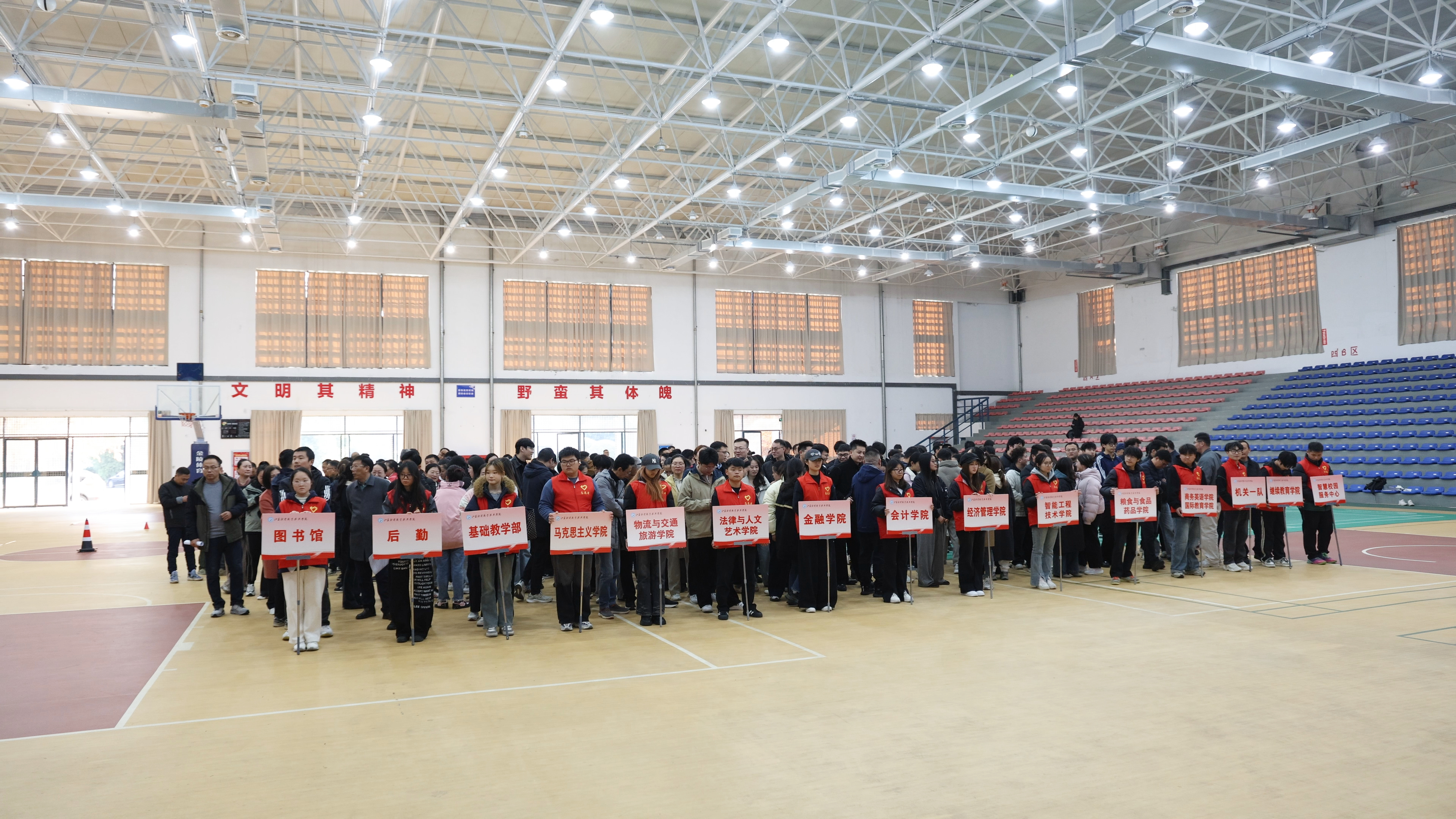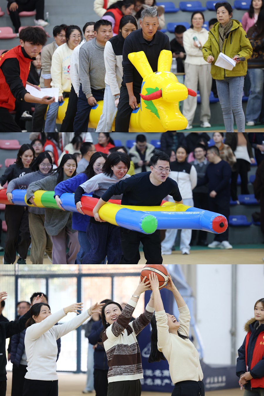 11月26日下午,学校工会联合体育工作部在学校训练馆成功举办了第五届教职工体育文化节暨2025年教职工趣味运动会。本次运动会以“活力校园 同心同行”为主题,旨在丰富和活跃教职工业余文化生活,进一步展示教职工昂扬向上的精神风貌,引导广大教职工积极参加体育锻炼,发扬相互协作精神,增强教职工团队荣誉感,促进教职工相互交流。学校党委副书记杜萍及来自各分工会15支代表队共300余名教职工参加了本次活动。