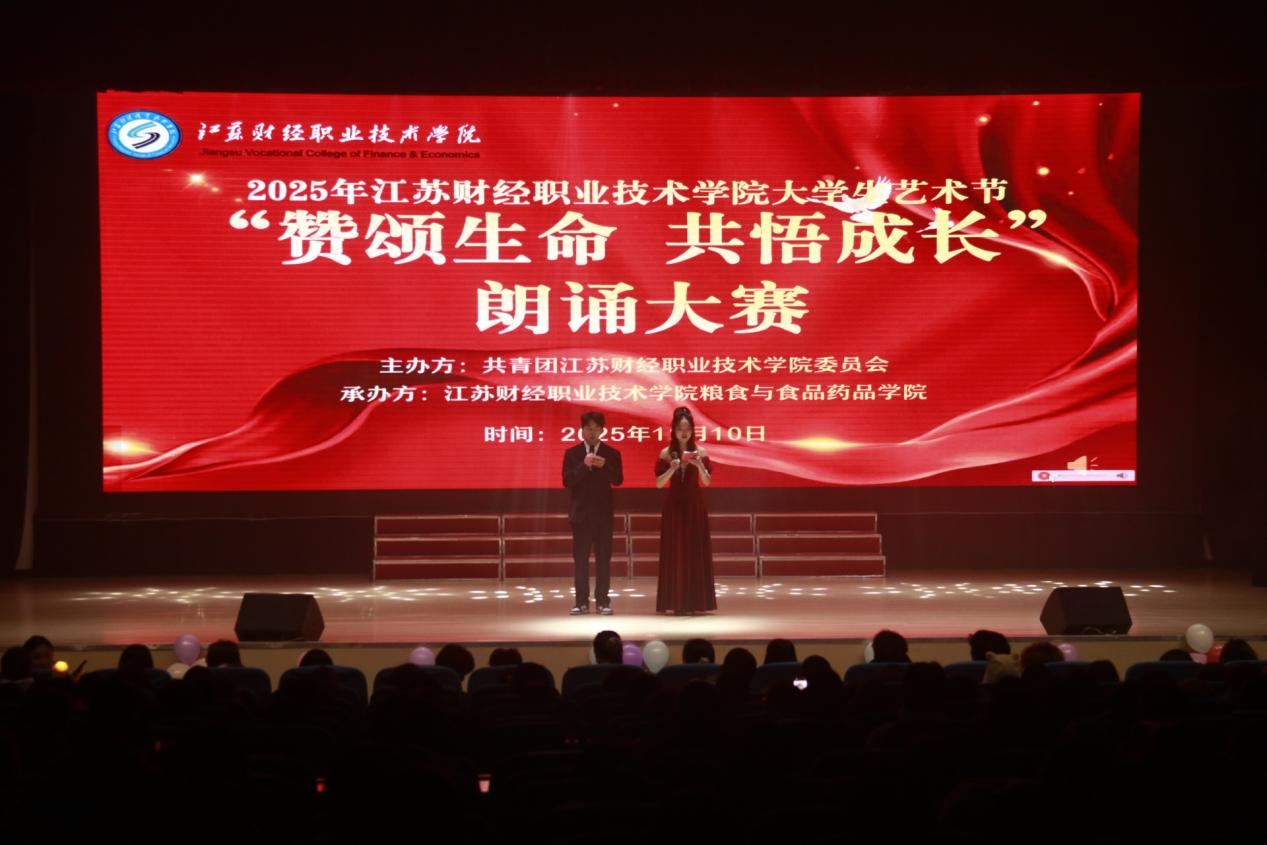 为深入贯彻落实《江苏财经职业技术学院关于加强学生生命教育的实施意见》的文件精神,引导学生感悟生命价值、树立积极成长理念,12月10日,由校团委、关工委秘书处主办,粮食与食品药品学院承办的2025年“赞颂生命 歌颂成长”校园朗诵大赛在学校图书馆多功能报告厅圆满举行。校团委书记王亚南及各二级学院分团委书记出席活动,与近500名师生共同见证这场以声音传递生命力量的盛宴。