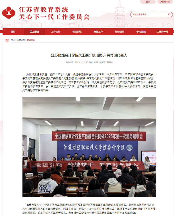 链接地址:【江苏省教育系统关心下一代工作委员会】 https://jyggw.ycw.com.cn/article/content.html?key=693b7b31156982b80e8b4572&&pkey=5fcdc41bfd006f38578b4567&&lanmu=gxdt