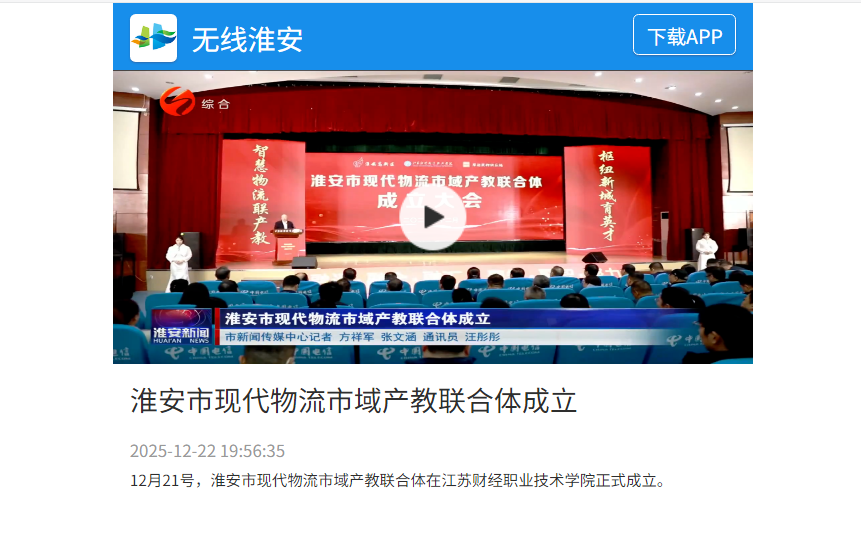 12月21号,淮安市现代物流市域产教联合体在江苏财经职业技术学院正式成立。