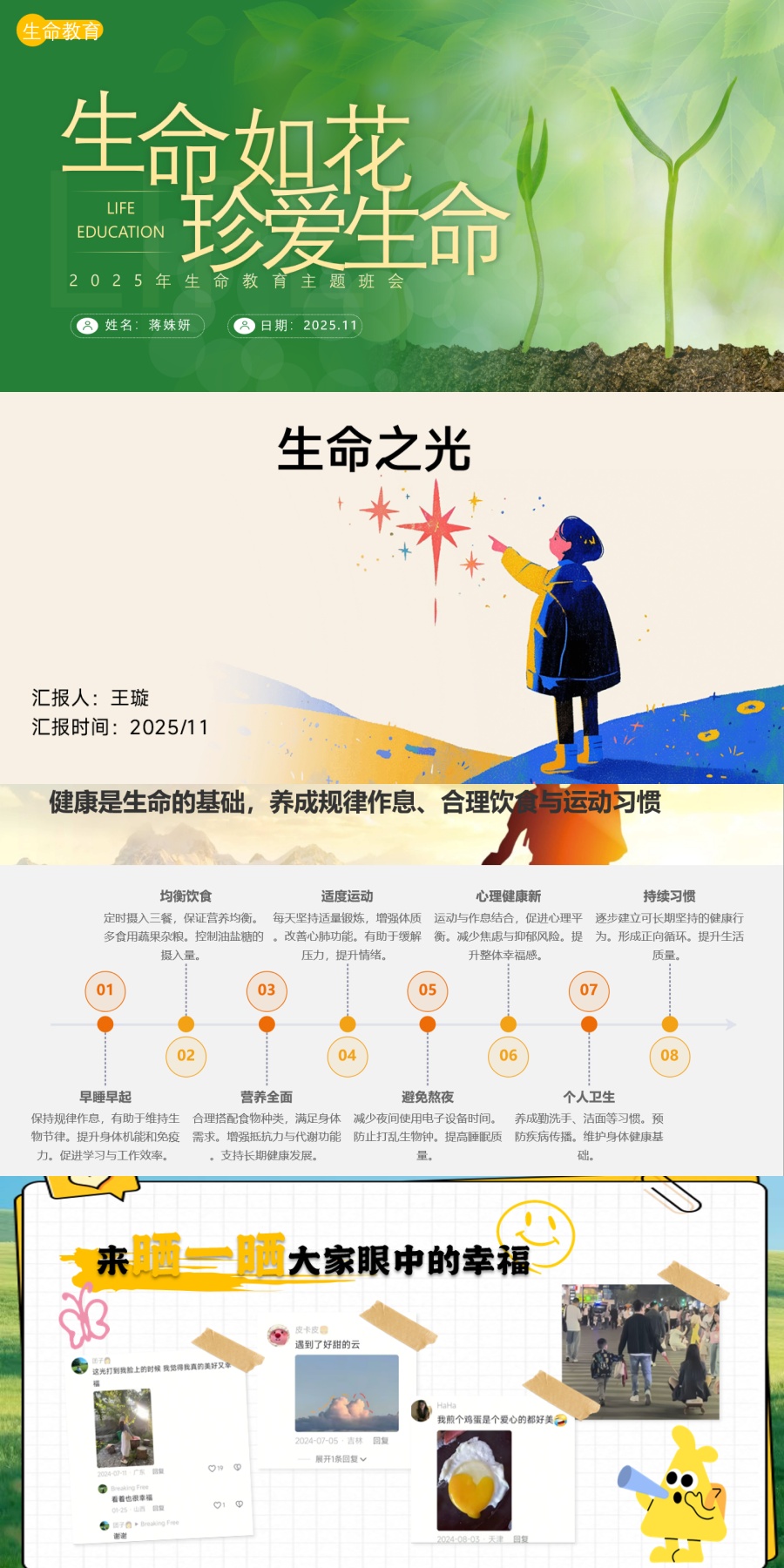 “生命之光”主题班会活动是我校构建“五育并举”融合育人体系、深化学生生命教育的重要环节之一,是将生命教育融入日常思想政治教育和学生管理服务的具体实践。学校将继续以《实施意见》为指引,持续拓展生命教育的载体与内涵,充分发挥课堂教学、第二课堂、社会实践、校园文化等多渠道育人功能,助力每一位学子点亮属于自己的“生命之光”,在新时代的征程中绽放绚丽青春。