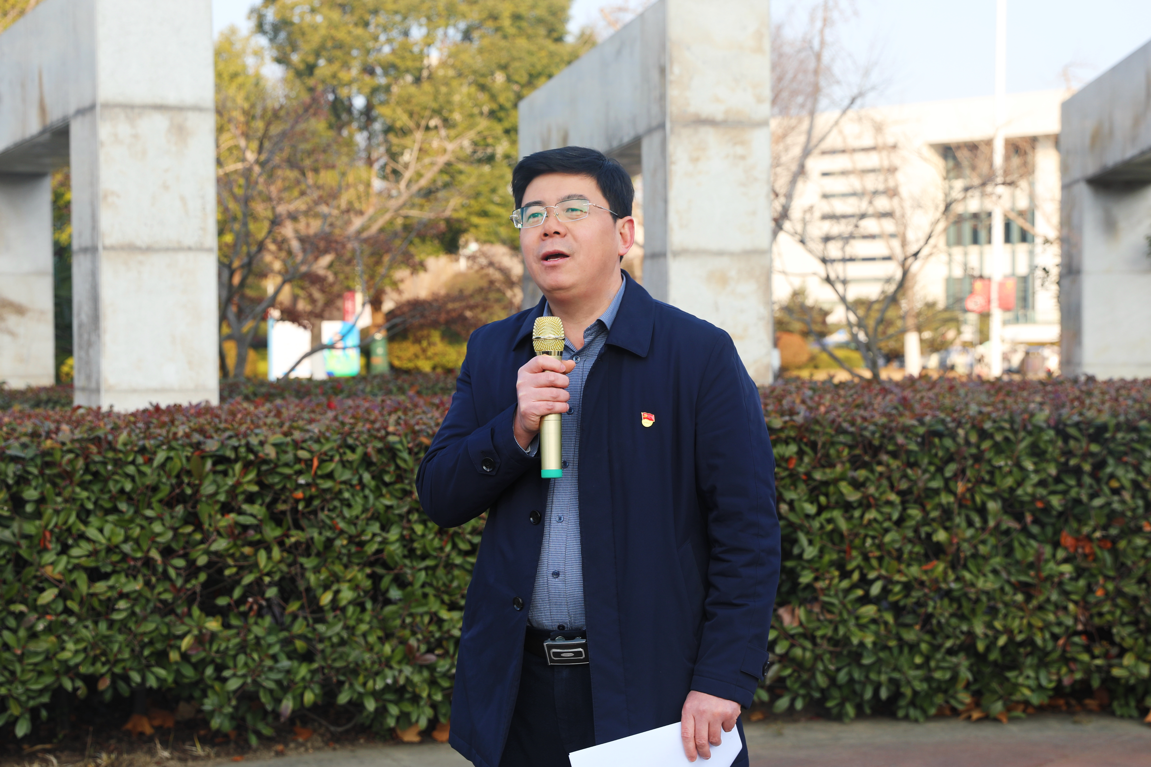 活动最后,闫超栋发表讲话。他指出,周恩来总理是近代以来中华民族的一颗璀璨巨星,是中国共产党人的一面不朽旗帜,习近平总书记概括的“六个杰出楷模”精准诠释了总理的崇高精神品格。作为总理家乡的高校,学校始终将传承弘扬周恩来崇高精神风范作为办学育人的精神内核,通过 “周恩来班”创建、主题展馆建设、特色课程开设、主题活动开展等系列举措,让伟人精神在校园落地生根、开花结果。他向全体师生提出三点希望:一是做坚守信仰、对党忠诚的传承者,让忠诚于党的信念融入血脉;二是做求真务实、勤学笃行的践行者,以实干姿态锤炼过硬本领;三是做心系人民、勇于担当的奋斗者,将个人理想融入国家发展大局,践行“把周总理家乡建设好”的殷切嘱托,为实现中华民族伟大复兴的中国梦贡献财院力量。