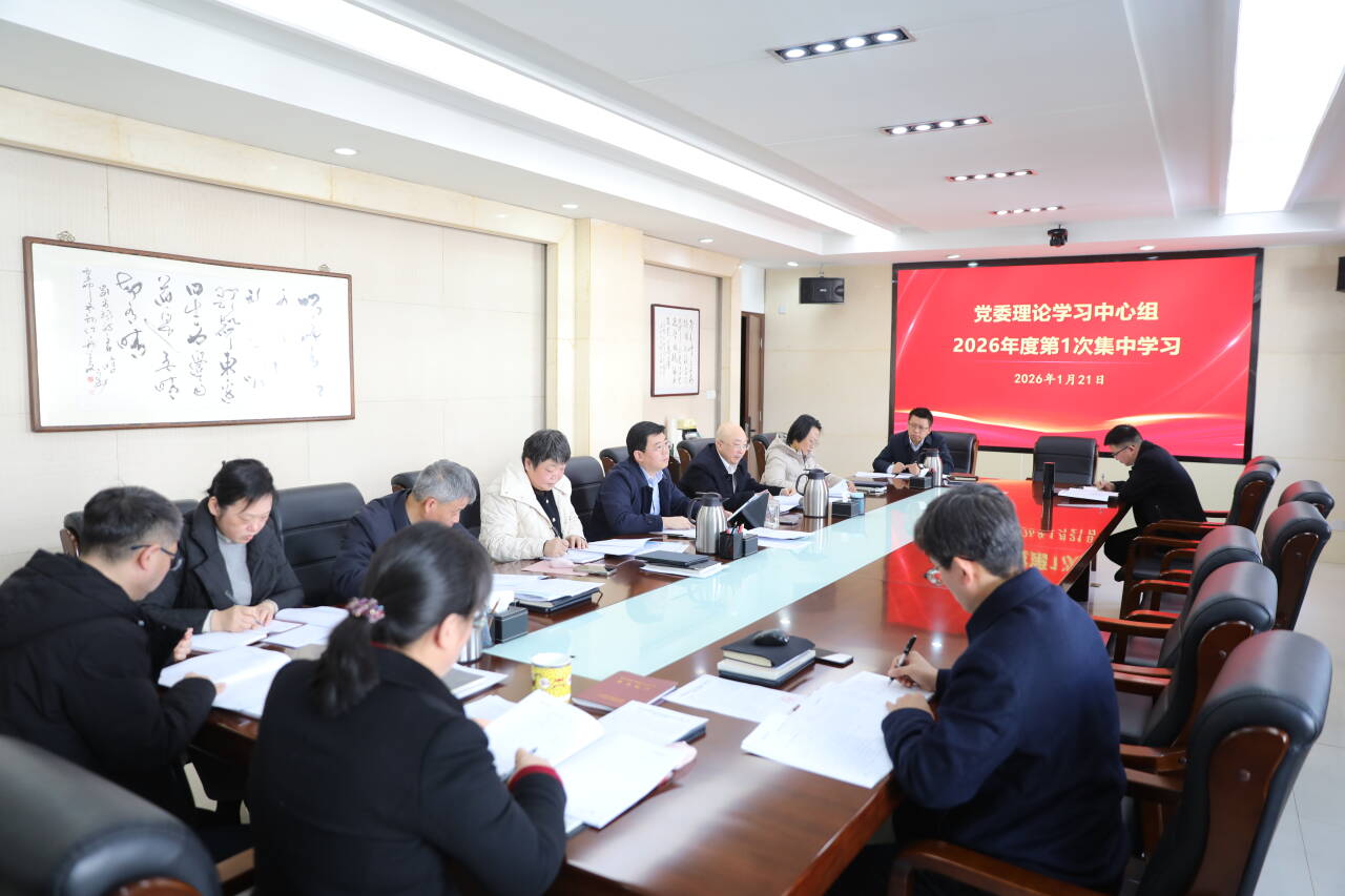 1月21日上午,学校党委理论学习中心组召开2026年度第1次集中学习会暨2025年度民主生活会专题学习会,深入学习《中国共产党章程》、习近平总书记关于党的建设的重要思想、关于党的自我革命的重要思想,为高质量开好领导班子民主生活会打牢思想基础。党委书记闫超栋主持学习并讲话,党委理论学习中心组全体成员参加学习。