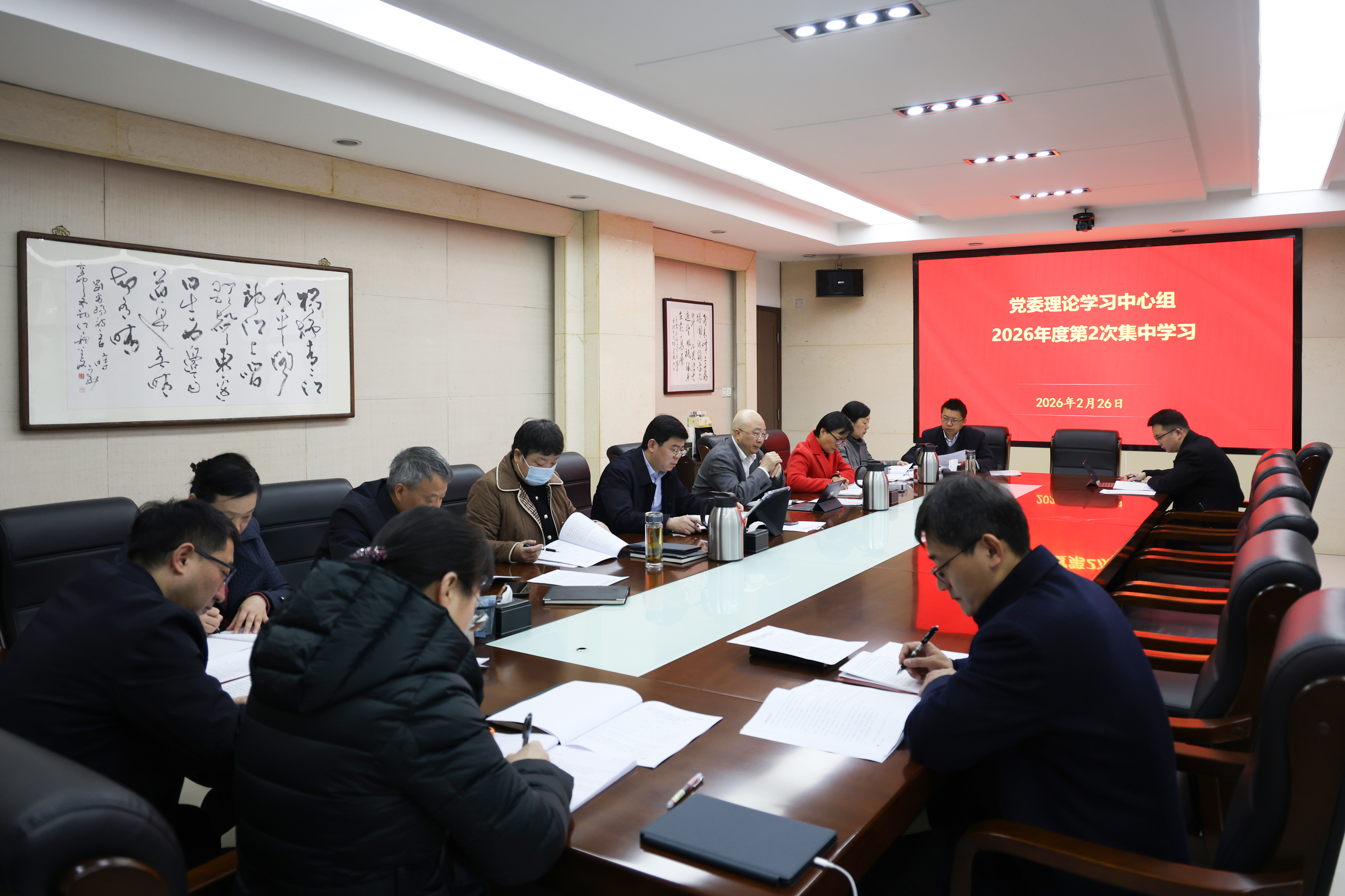 2月26日上午,学校党委理论学习中心组在明德楼310会议室举行2026年度第2次集中学习会,党委书记闫超栋主持会议并讲话,党委理论学习中心组全体成员参加学习会。