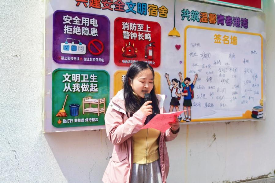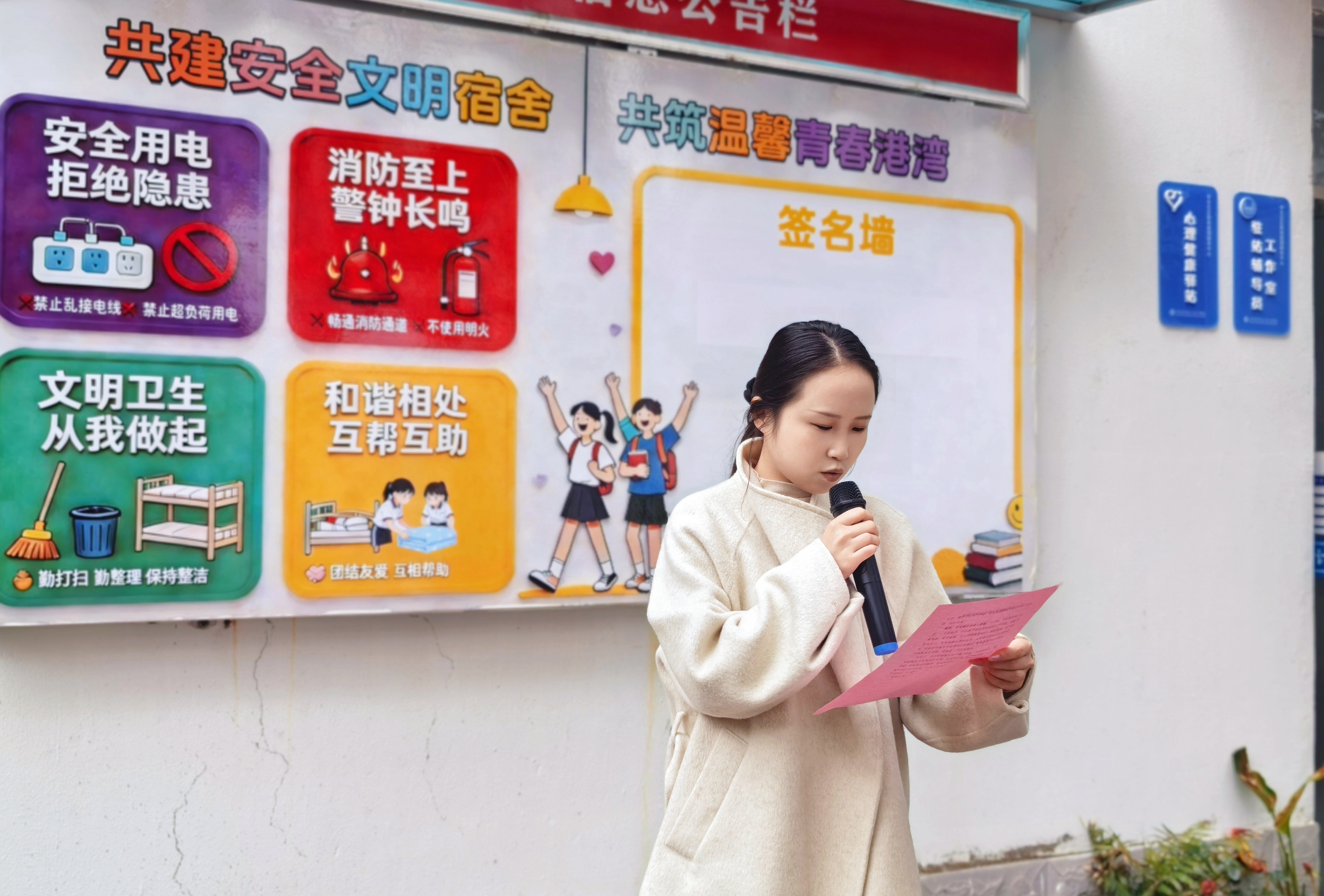 现场,学生代表宣读《宿舍安全文明倡议书》,号召全体同学自觉遵守宿舍管理规定,共建安全、文明、和谐的家园。