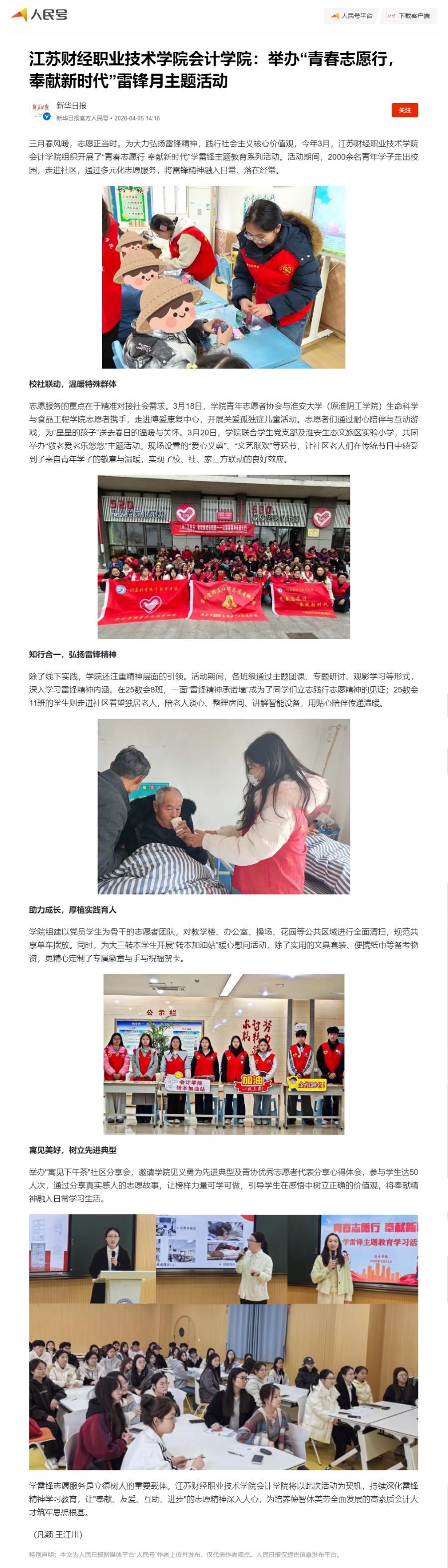 【人民日报-人民号】江苏财经职业技术学院会计学院:举办“青春志愿行,奉献新时代”雷锋月主题活动