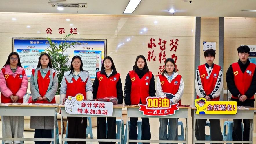 学院组建以党员学生为骨干的志愿者团队,对教学楼、办公室、操场、花园等公共区域进行全面清扫,规范共享单车摆放。同时,为大三转本学生开展“转本加油站”暖心慰问活动,除了实用的文具套装、便携纸巾等备考物资,更精心定制了专属徽章与手写祝福贺卡。