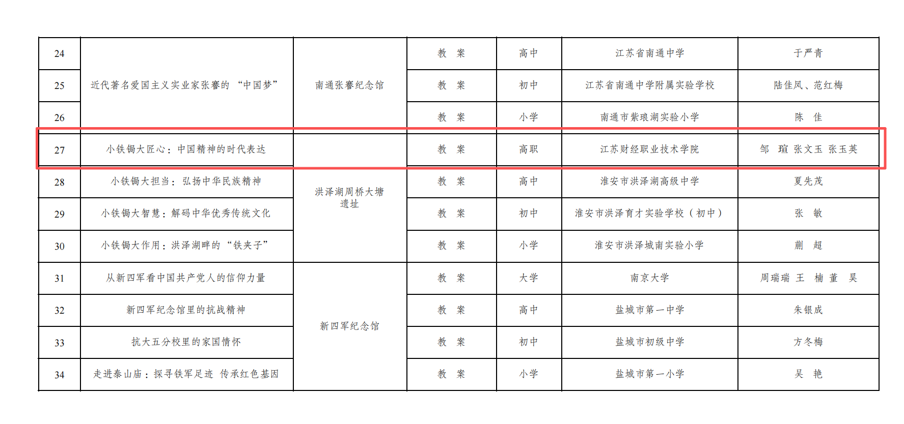 近日,江苏省首批“博物馆里的思政课”优质教学资源认定结果公布,我校党委宣传部、马克思主义学院申报的《小铁锔大匠心:中国精神的时代表达》教案(团队成员:邹瑄、张文玉、张玉英)成功入选,这是我校在“大思政课”和大中小学思想政治教育一体化建设方面取得的又一成果。