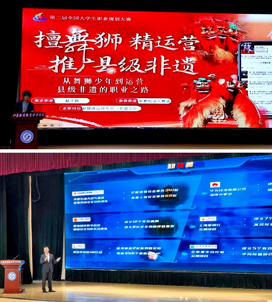 学校邀请第二届全国大学生职业规划大赛国赛就业赛道职教组金奖获得者李村、国赛铜奖获得者赵千秋分享职业规划与备赛经验。分享中,李村结合自身参赛经历,围绕职业目标确立、规划方案撰写、备赛技巧、答辩应变等方面展开,详细讲述了自己如何结合专业优势锁定职业方向,如何通过反复打磨、优化参赛作品,最终斩获国赛金奖的历程,并勉励在座学生珍惜大赛培训机会,立足专业、明确方向,勇于实践。赵千秋则从自我认知、职业定位、规划落地等角度分享经验,建议同学们结合行业发展趋势调整规划与参赛思路,在培训中积累经验,在实践中完善自我,充分借助大赛平台提升自身就业竞争力。两位获奖选手的分享贴近学生实际,现场掌声不断,为在场指导老师开展大赛辅导、学生备战赛事提供了宝贵的经验。