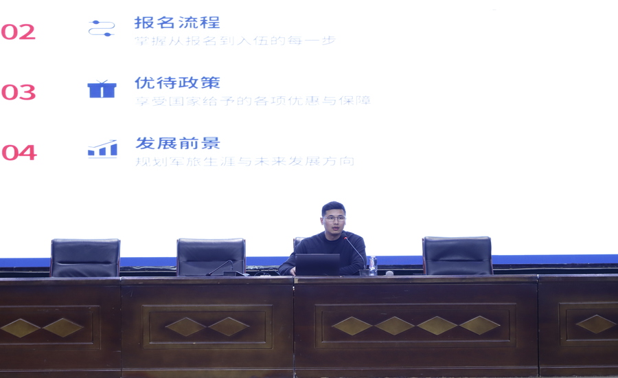 最后,学校人武部贾晓晓老师围绕征兵政策、入伍流程、军旅发展、优待保障等内容进行细致宣讲,点燃青年学子携笔从戎、报效祖国的热情。