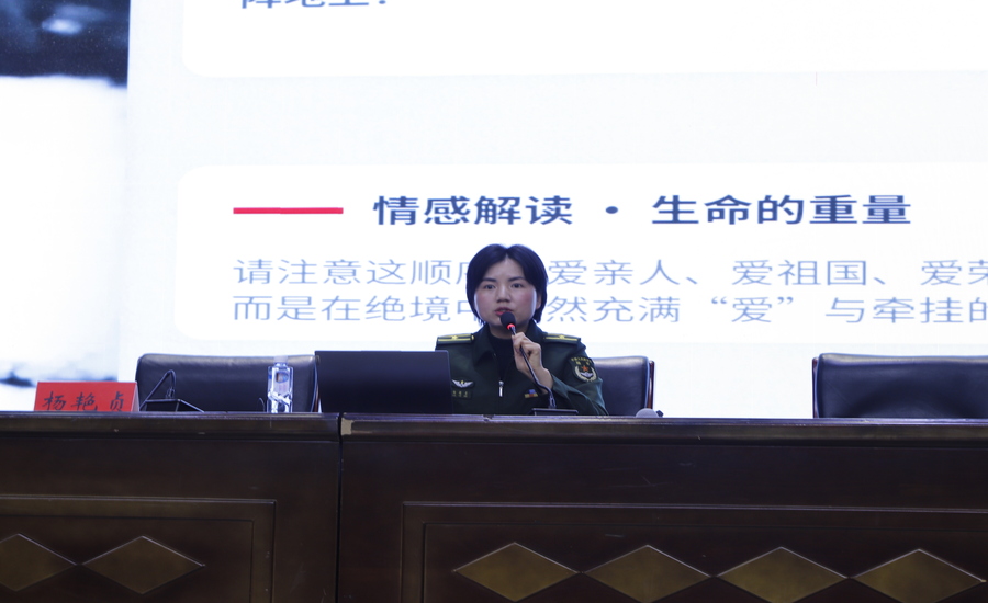 生命教育与征兵宣讲环节同步开展。73106部队军事心理学少校杨艳贞博士以“冻不住的春天——从长津湖到咖啡店,我们如何活出意义”为主题开展专题讲座,引导学生敬畏生命、珍惜韶华,将个人成长融入国防建设。