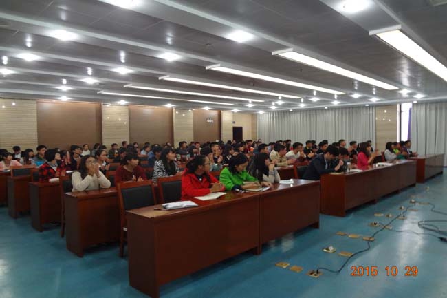 会议由曾征宇副馆长主持,于龙飞馆长在会上做了精彩的致辞,他将本届读书节的举办背景、活动特色以及书香与文化一脉相承的渊源做了讲话,并指出本届读书节的主题正是为了响应教育部关于“礼敬中华传统文化”这一号召而定制的,赢得同学们的阵阵掌声。会上,朱绍勇书记和来自读者协会的朱寒蕊同学也分别做了发言,都以读书的意义、读书节活动的影响以及发挥的作用勉励同学们积极参与读书节活动、一起共享文化、成就人生。最后,图书馆的工作人员以PPT的形式对各项活动的内容以及报名途径作了详细的介绍。