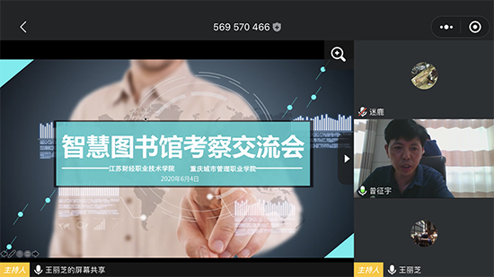 在智慧校园建设如火如荼的背景下,图书馆要适应和协同智慧校园的发展,借力智慧校园提升智慧图书馆的建设。而如何明确智慧图书馆的功能定位和发展策略,重组内部业务流程,提升馆员新型服务能力,成为图书馆人思考的重点问题。应重庆城市管理职业学院图书馆领导的邀请,6月4日江苏财经职业技术学院图书馆、重庆城市管理职业学院图书馆、超星公司,通过腾讯视频方式举办了两校三地智慧图书馆建设方案分享会。