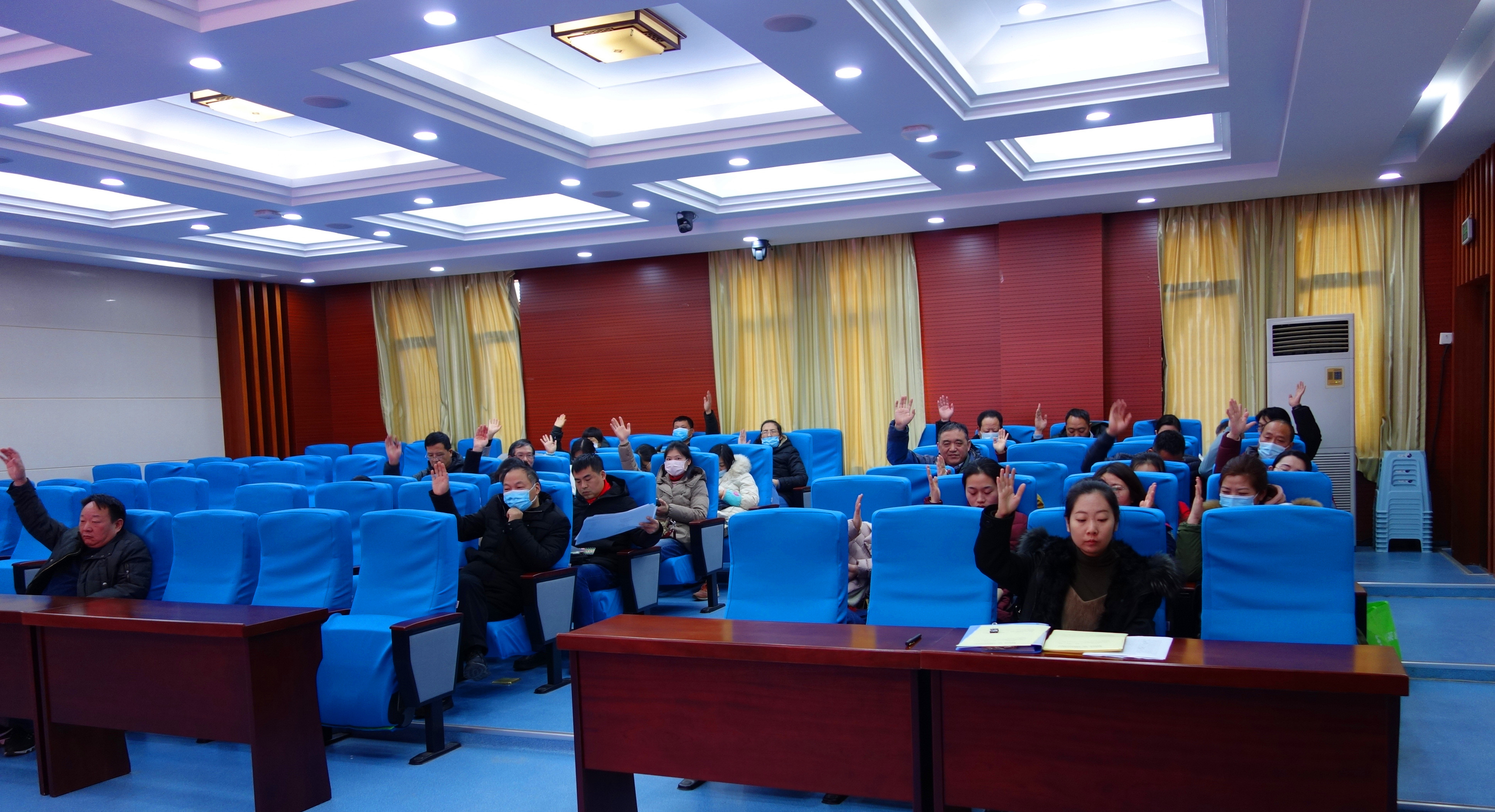 最后,教职工大会暨工会会员大会圆满完成了各项议程,在庄严的《国际歌》声中胜利闭幕。