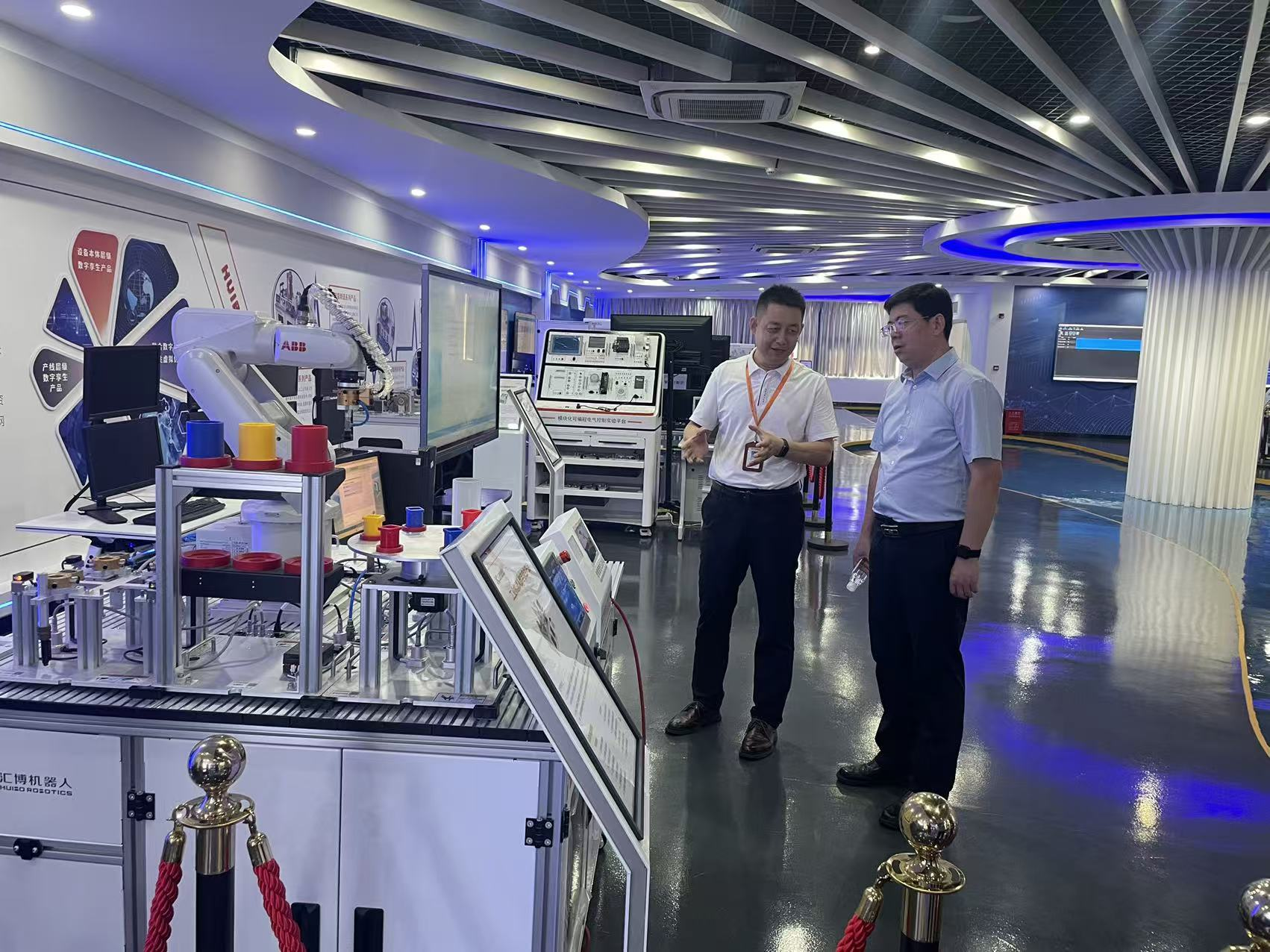 调研期间,闫超栋一行参观了四所学校的重点实验实训基地、特色场馆等相关场所设施,走访了江苏汇博机器人展厅。