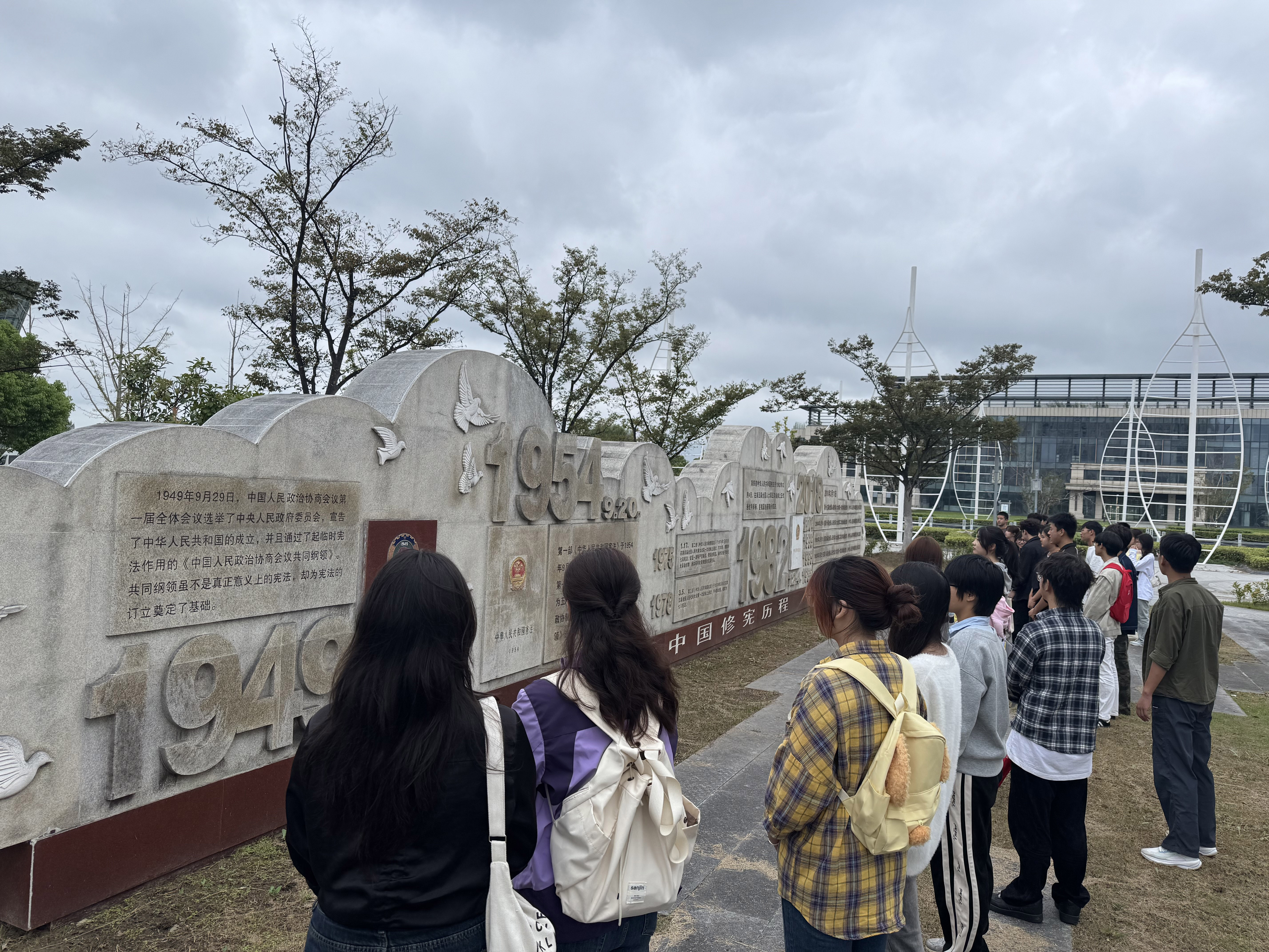 在学生党支部书记张松的带领下,同学们怀着尊崇之心来到淮安宪法主题公园。走进公园,庄严肃穆的宪法宣誓墙、镌刻着宪法条文的景观石、生动形象的法治文化浮雕等特色景观映入眼帘,浓厚的法治文化氛围瞬间感染了在场的每一位同学。同学们沿着“宪法历程”、“法治名言”、“典型案例” 等主题展区有序参观,进一步了解了宪法的重要性,并通过各类典型案例,深化对法治的理解和信仰。