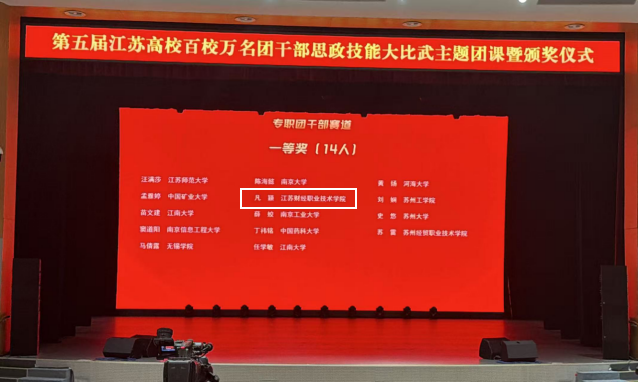 9月28日,由共青团江苏省委联合中共江苏省委教育工委、江苏省社会科学院、江苏省学生联合会主办的第五届江苏高校百校万名团干部思政技能大比武省赛决赛在中国矿业大学落下帷幕。我校会计学院辅导员凡颖荣获专职团干部赛道一等奖,取得本赛事我校成绩新突破。