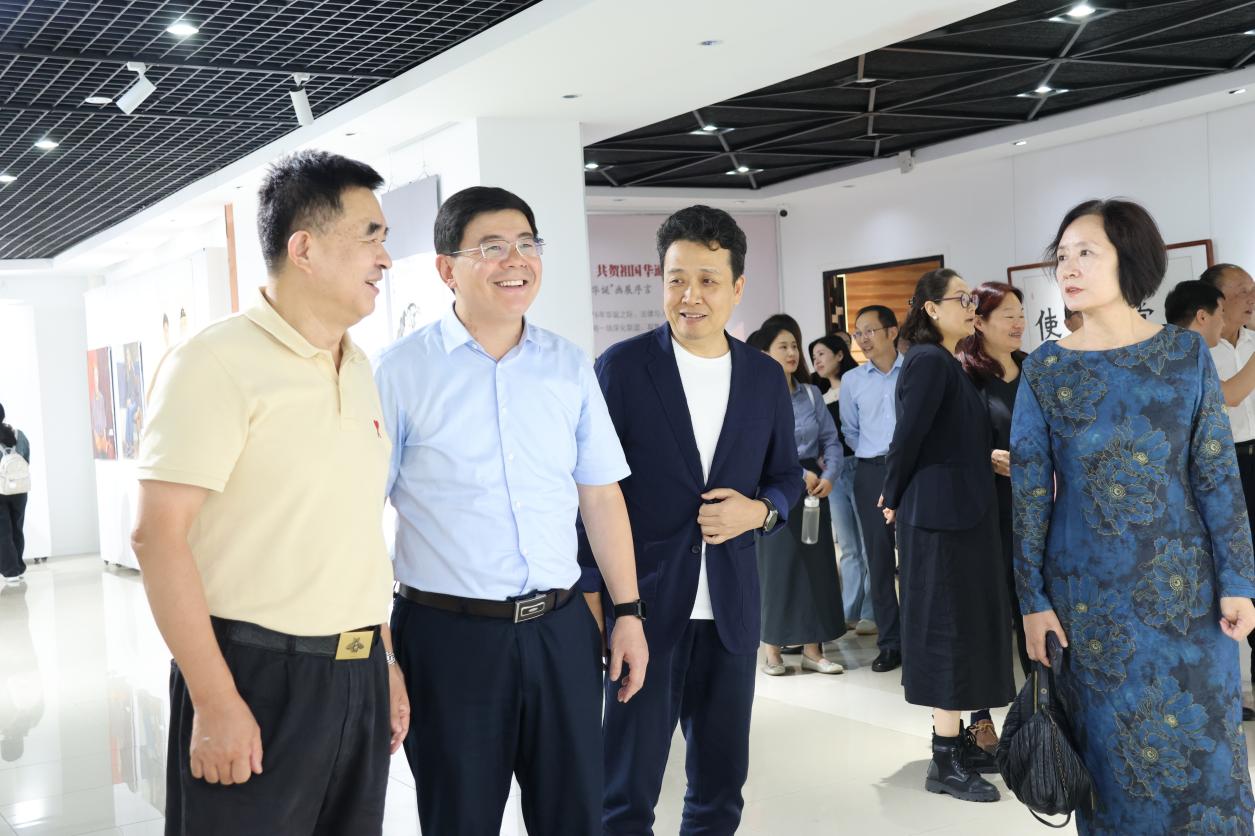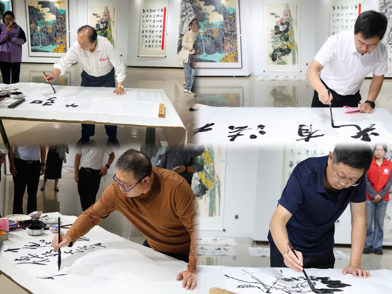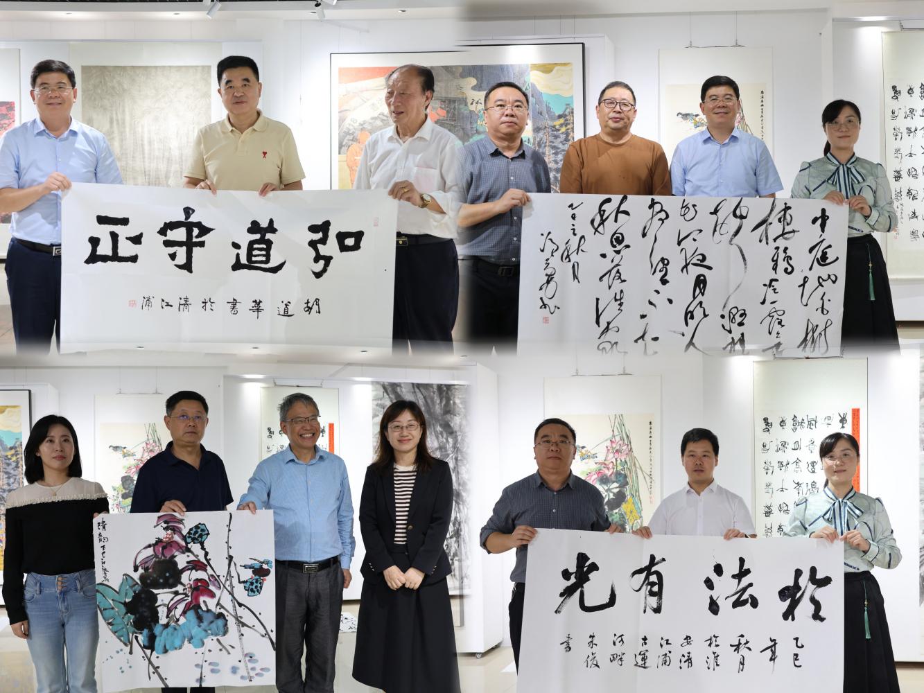 随后,领导嘉宾与师生代表移步“移动美术馆”——知行楼201展厅。80余幅书画精品或雄浑豪放,或清新隽永;《山河无恙》《同心铸梦》等力作,把对党、对祖国的深情凝于尺素。翰墨丹青,礼赞新中国七十六载峥嵘;笔走龙蛇,书写新时代千里江山。一幅幅山水寄情,一幅幅花鸟言志,一幅幅铁画银钩,尽展党盟携手、师生同心的磅礴气象。