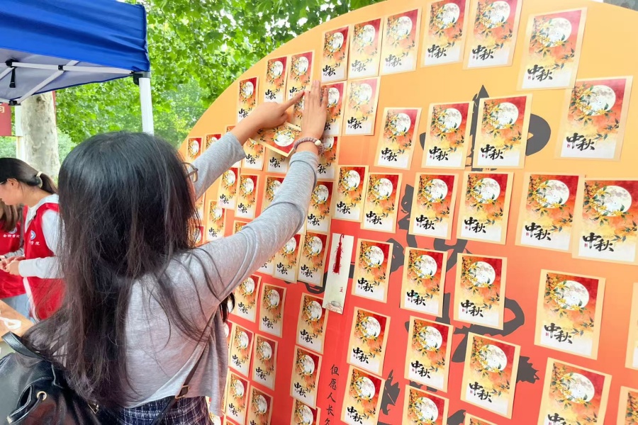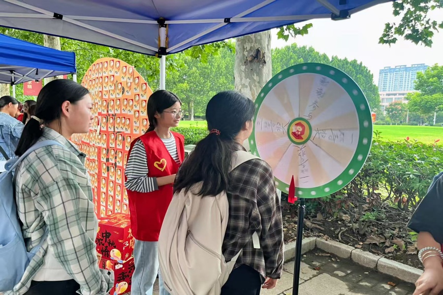本次活动共设置三个主要环节。“向月亮许愿”环节中,同学们亲手制作精美书签,将真挚的节日祝福与个人成长目标郑重书写其上,并张贴于专属的“中秋许愿墙”,让每一份心愿随笔墨定格。“猜灯谜”环节中,同学们或凝神思索,或积极讨论,在猜灯谜的过程中感受传统文化的博大精深。“月满转盘”环节带来连连惊喜,同学们转动幸运转盘,赢取各式口味的月饼,“拆盲盒”般的未知乐趣让现场笑声不断,气氛热烈欢腾。
