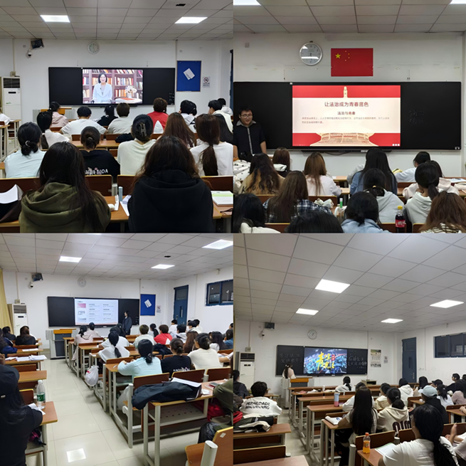 学院各班级围绕“守望成长,法治护航”召开主题班会。班会上,各班级结合与学生生活密切相关的典型案例和视频资料,生动讲解了宪法、民法典等相关法律知识。2025级新生班级还组织“法治在我心”讨论活动,同学们踊跃分享身边法治故事,共同探讨社会主义法治的丰富内涵和价值追求。视频学习环节中,学院推送法治教育专题视频,内容涵盖宪法知识、防范网络诈骗、校园贷风险识别等与学生群体息息相关的内容。