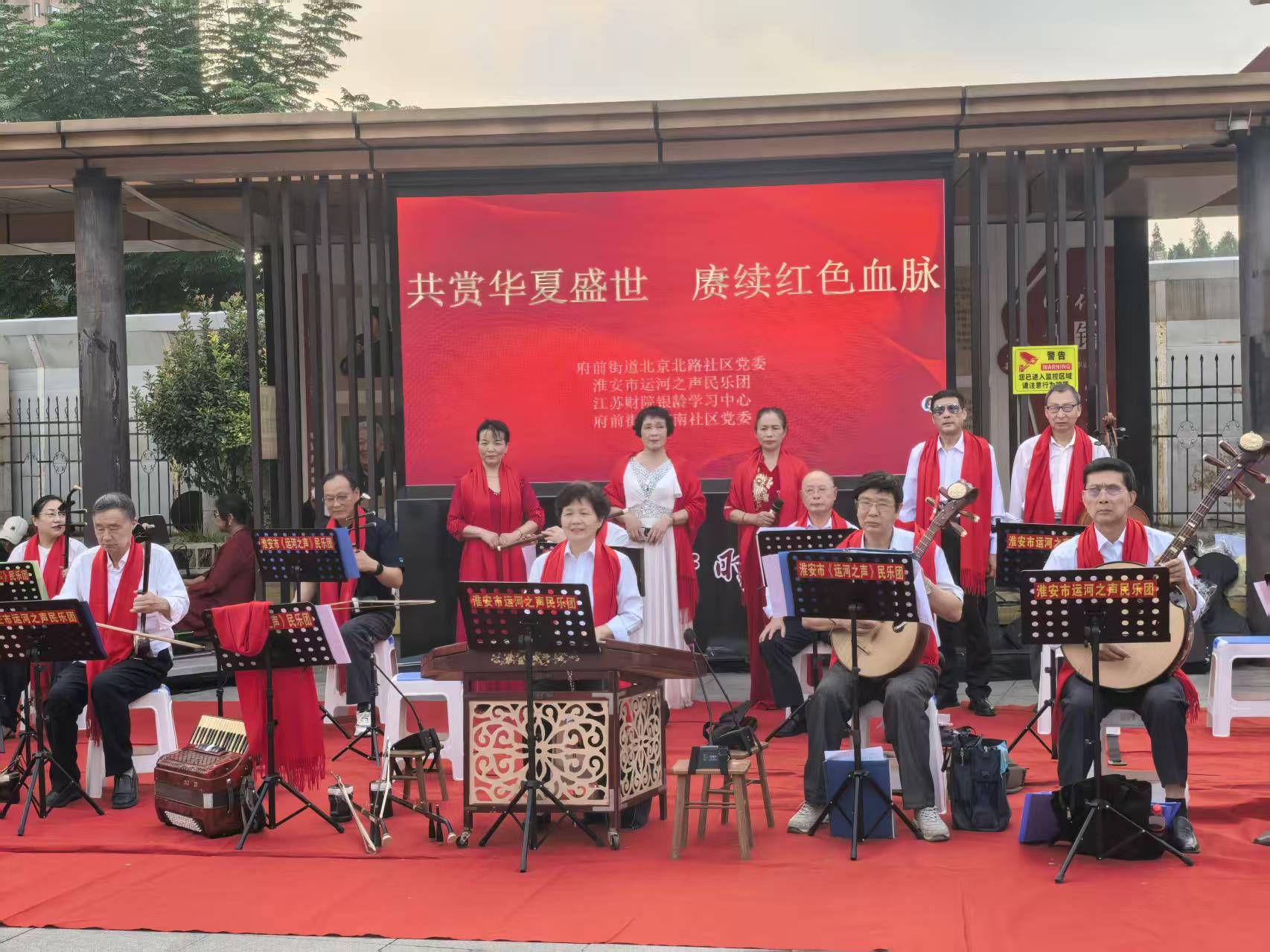 金秋时节,丹桂飘香,国庆佳节的喜庆氛围日渐浓厚。9月30日下午,淮安市清江浦区府前街道夕阳红广场热闹非凡,由江苏财经职业技术学院银龄中心与北京北路社区联合主办的“同心庆国庆,共建家园情”公益慰问演出正式启幕,近百名居民欢聚一堂,共迎祖国华诞、共叙邻里温情。
