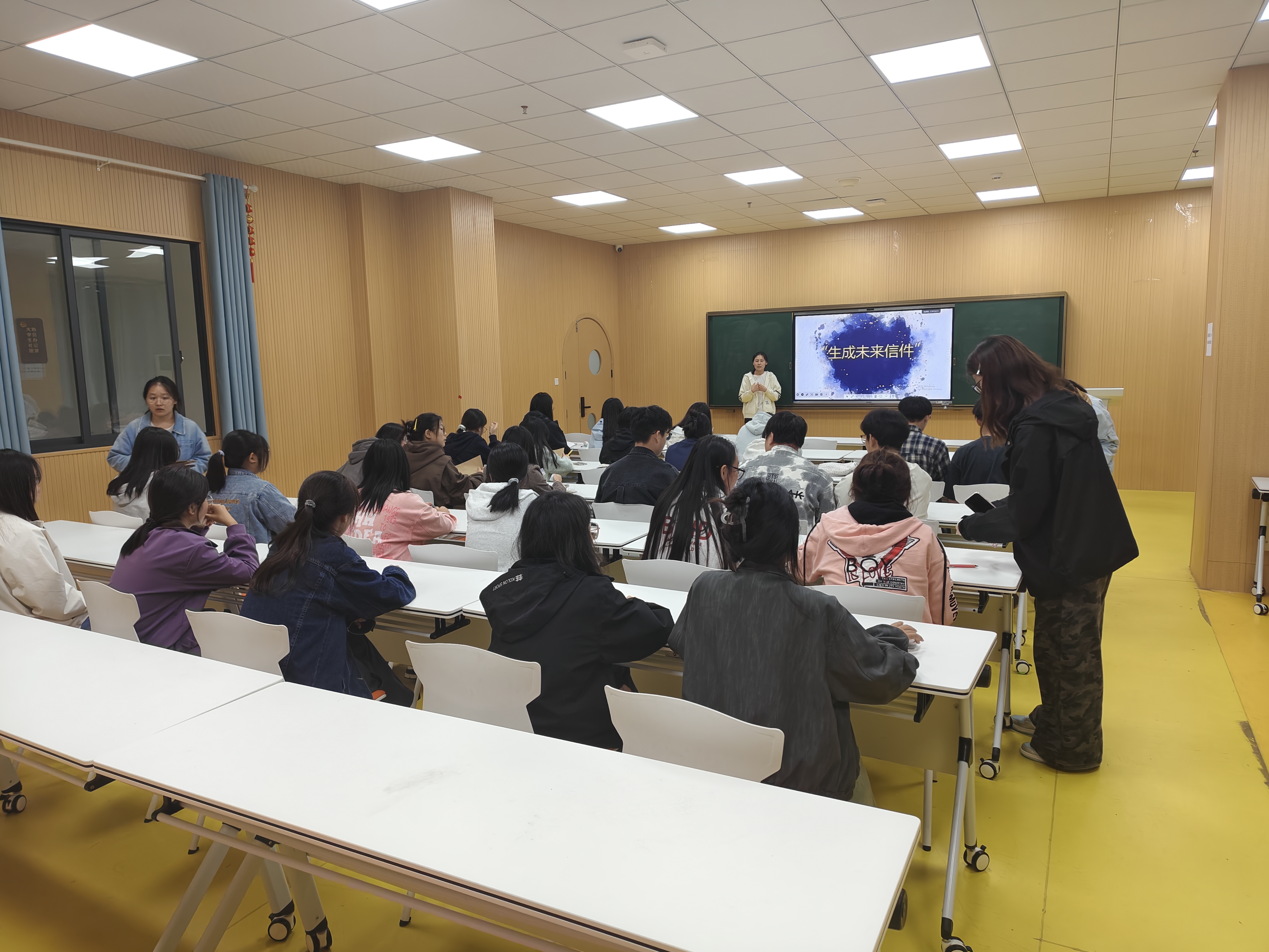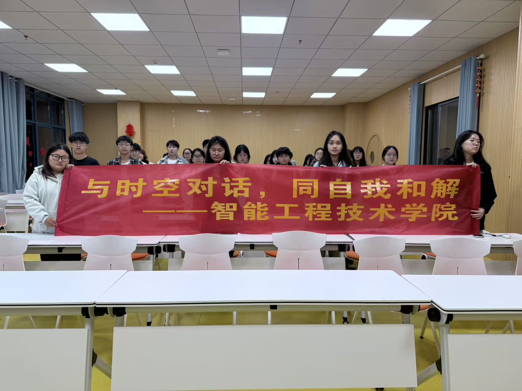 为深入践行“五育并举,融合育人” 育人理念,切实帮助学生缓解学业压力与未来规划迷茫引发的焦虑情绪,强化长期目标意识,提升自我认知与情绪管理能力,智能工程技术学院大学生事务与发展中心心理健康部于10月14日晚在五育融合发展中心思政教室开展“与时空对话,同自我和解”心理健康主题活动。