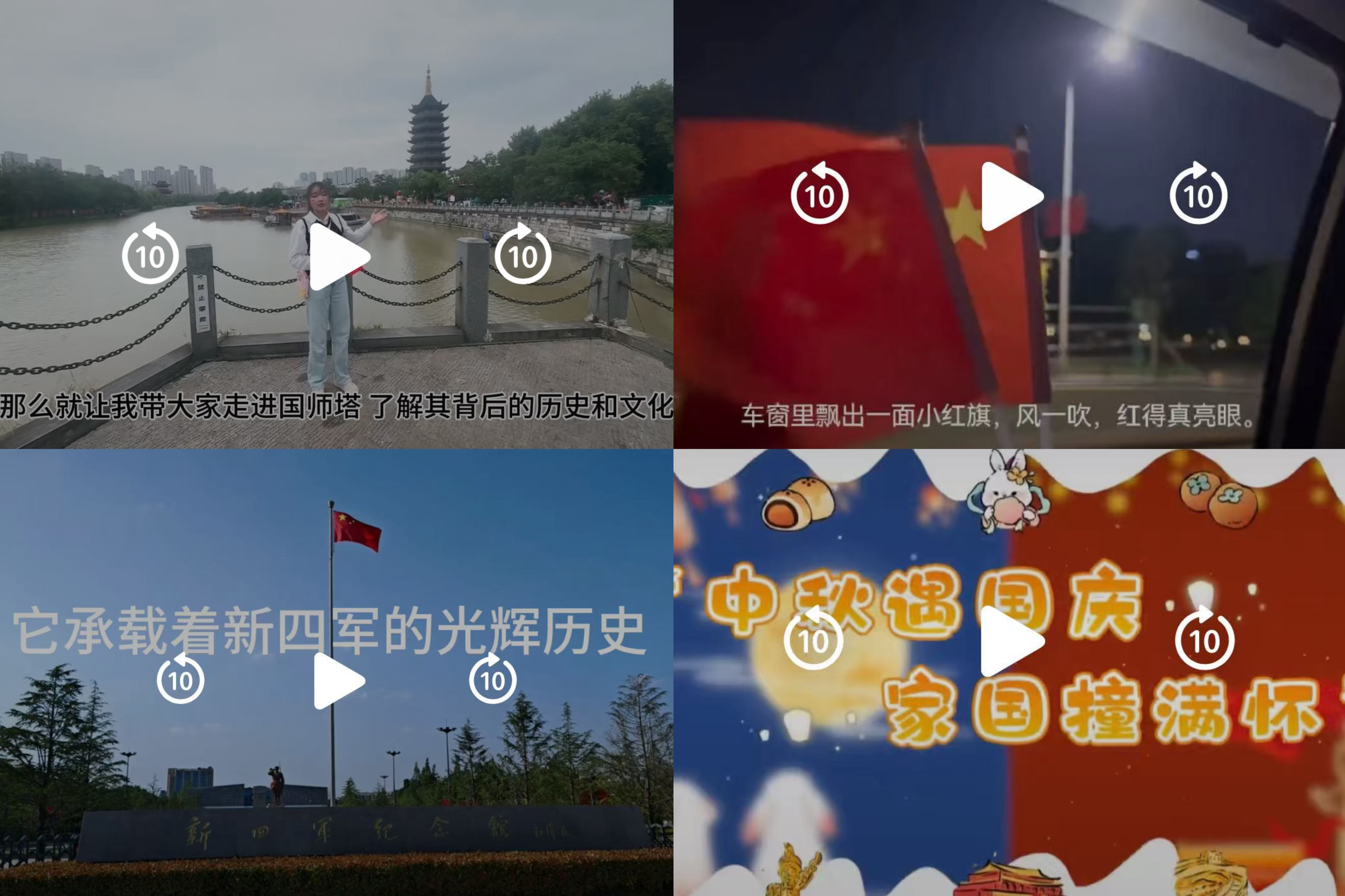 作品中,同学们化身“家乡文化记录者”,用镜头捕捉双节特色与家国情感:“双节地标探访”板块中,学生聚焦家乡挂有“欢度国庆 喜迎中秋”主题装饰的城市广场、中秋赏月热门的古楼江岸等场景,拍摄时同步分享地标背后的历史故事或个人双节回忆,部分作品还通过字幕标注地标背景,让影像更具信息量;“中秋温情专场”里,学生记录家庭中秋家宴、社区猜灯谜、街头舞龙灯等特色场景,从长辈教授传统月饼制作,到全家围坐赏月聊天,细腻呈现节日里的团圆温情,部分作品搭配国风背景音乐,进一步烘托氛围;“红色地标打卡”板块中,团员、党员按要求佩戴标识,走进家乡革命烈士陵园、红色纪念馆等场所,拍摄地标风貌与展陈文物,结合史料讲解革命故事,部分作品还以中英双语表达对家国的祝福,既贴合商务英语专业特色,也让红色精神更具传播力。经过评选,共评选出一等奖2名、二等奖2名、三等奖6名、优秀奖10名。