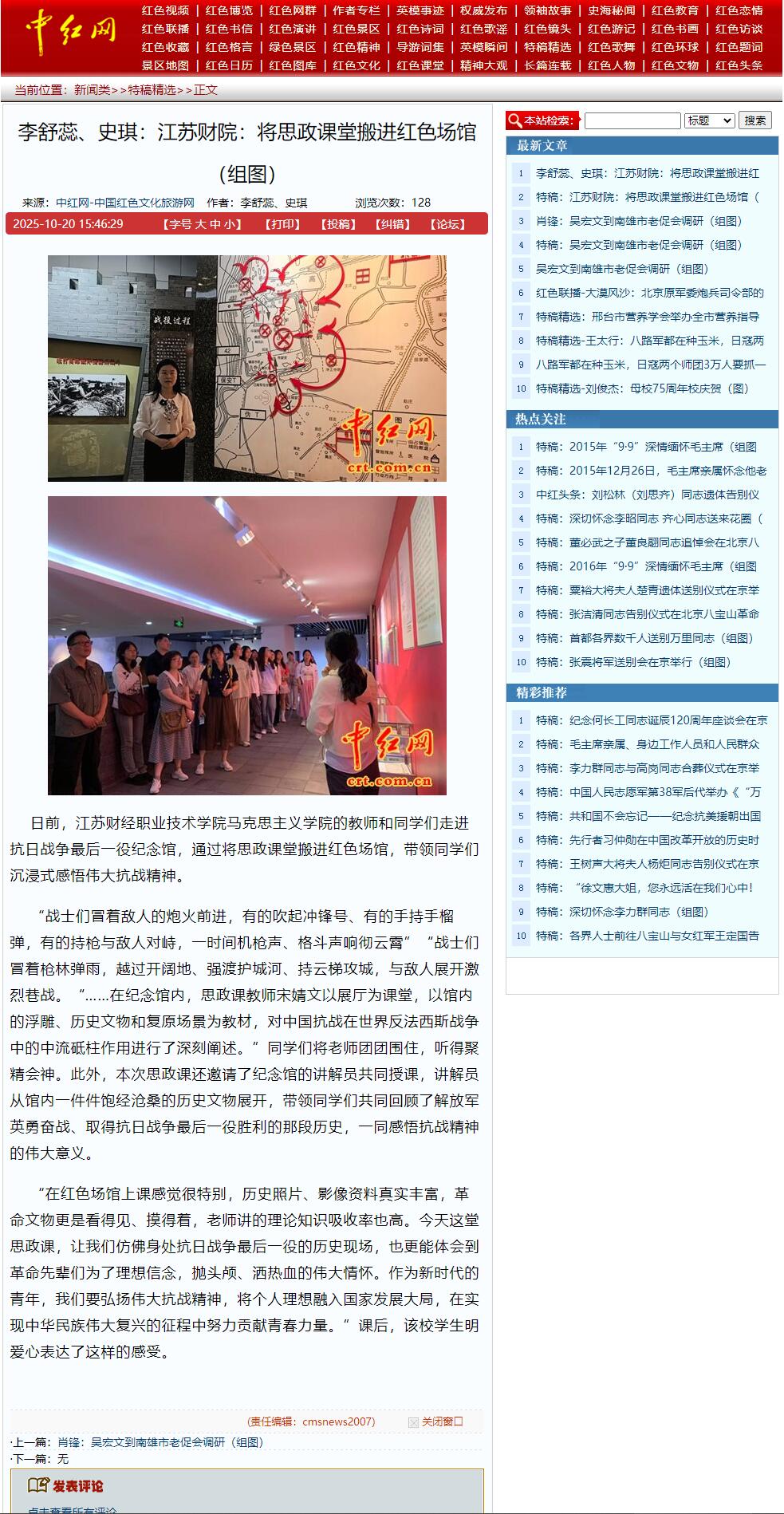 日前,江苏财经职业技术学院马克思主义学院的教师和同学们走进抗日战争最后一役纪念馆,通过将思政课堂搬进红色场馆,带领同学们沉浸式感悟伟大抗战精神。