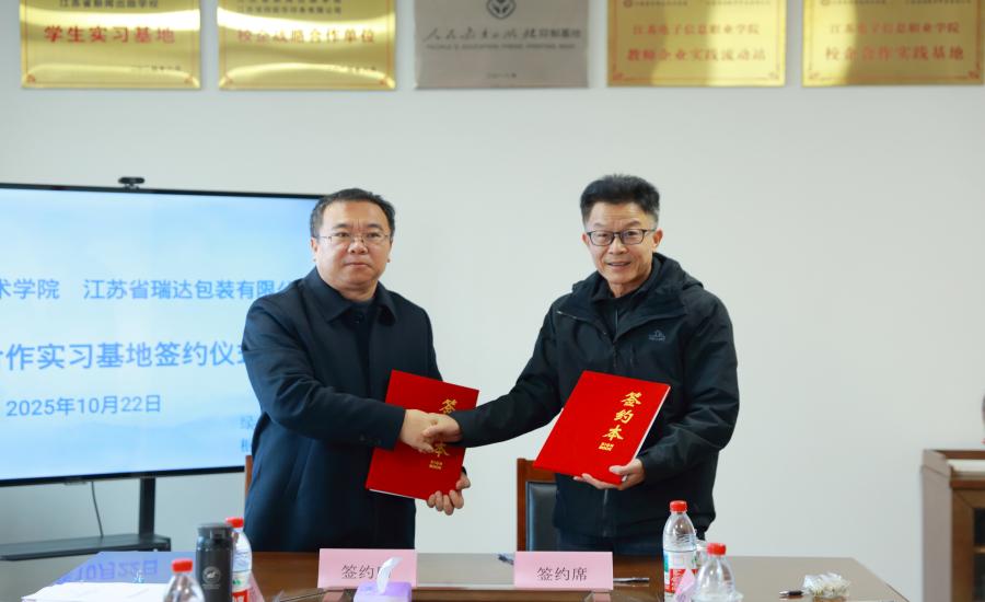 二是由解瑞卿院长代表学院,与江苏新华印务有限公司总经理赵耀、江苏农垦印刷厂有限公司董事长虞正东、江苏省瑞达包装有限公司总经理严红九,分别签订校企合作实习基地协议,双方将共建实习实训平台,推动学生走进车间、参与生产,实现“学中做、做中学”,提升职业技能与岗位适应能力。