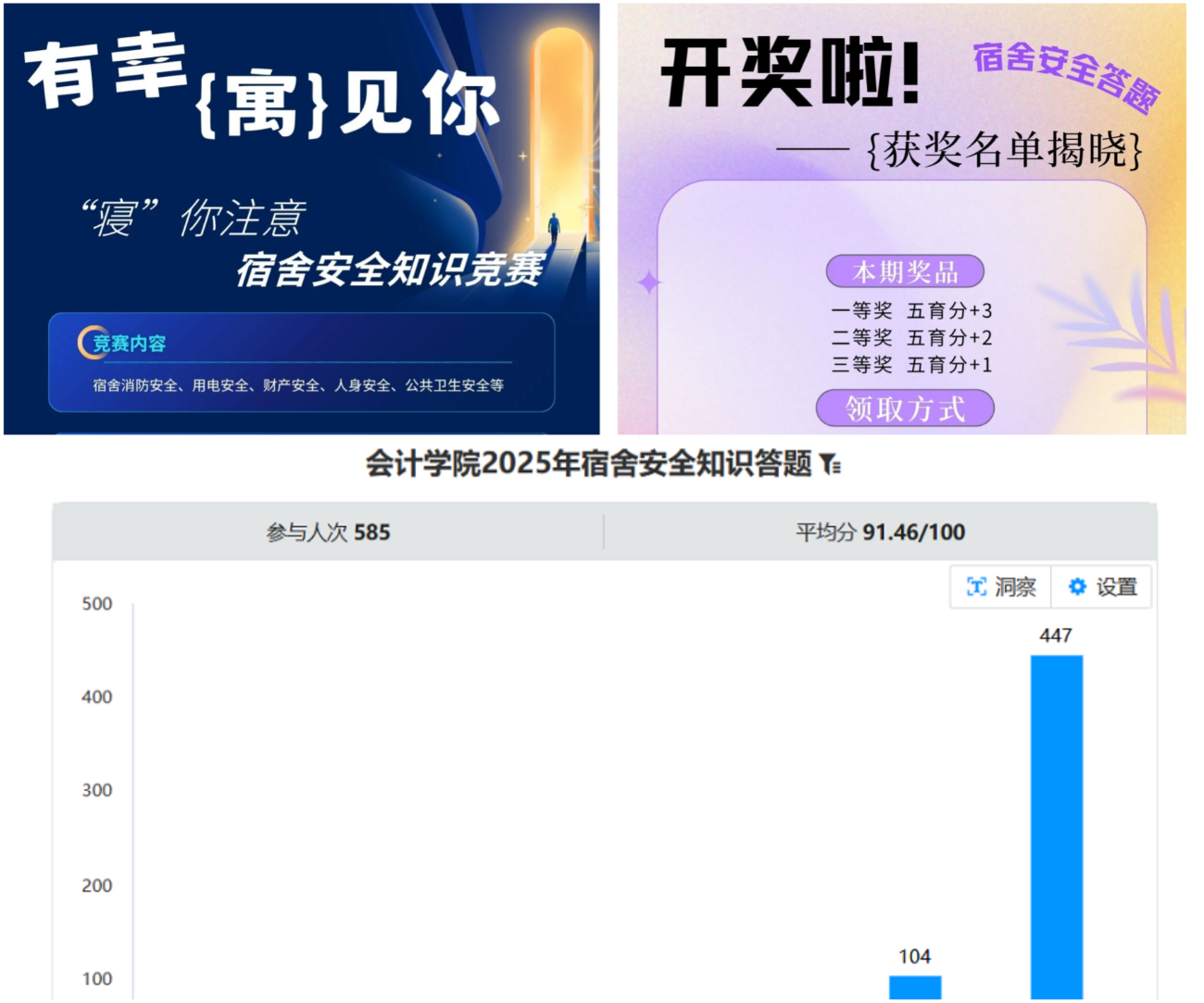 为检验和巩固学习成果,学院组织了面向全体25级新生的线上宿舍安全知识答题活动。答题内容涵盖消防、用电、防盗、防诈等多个方面,紧密结合校园生活实际。同学们踊跃参与,在答题中加深了对安全知识的理解,进一步扫除了知识盲区,筑牢了思想防线。