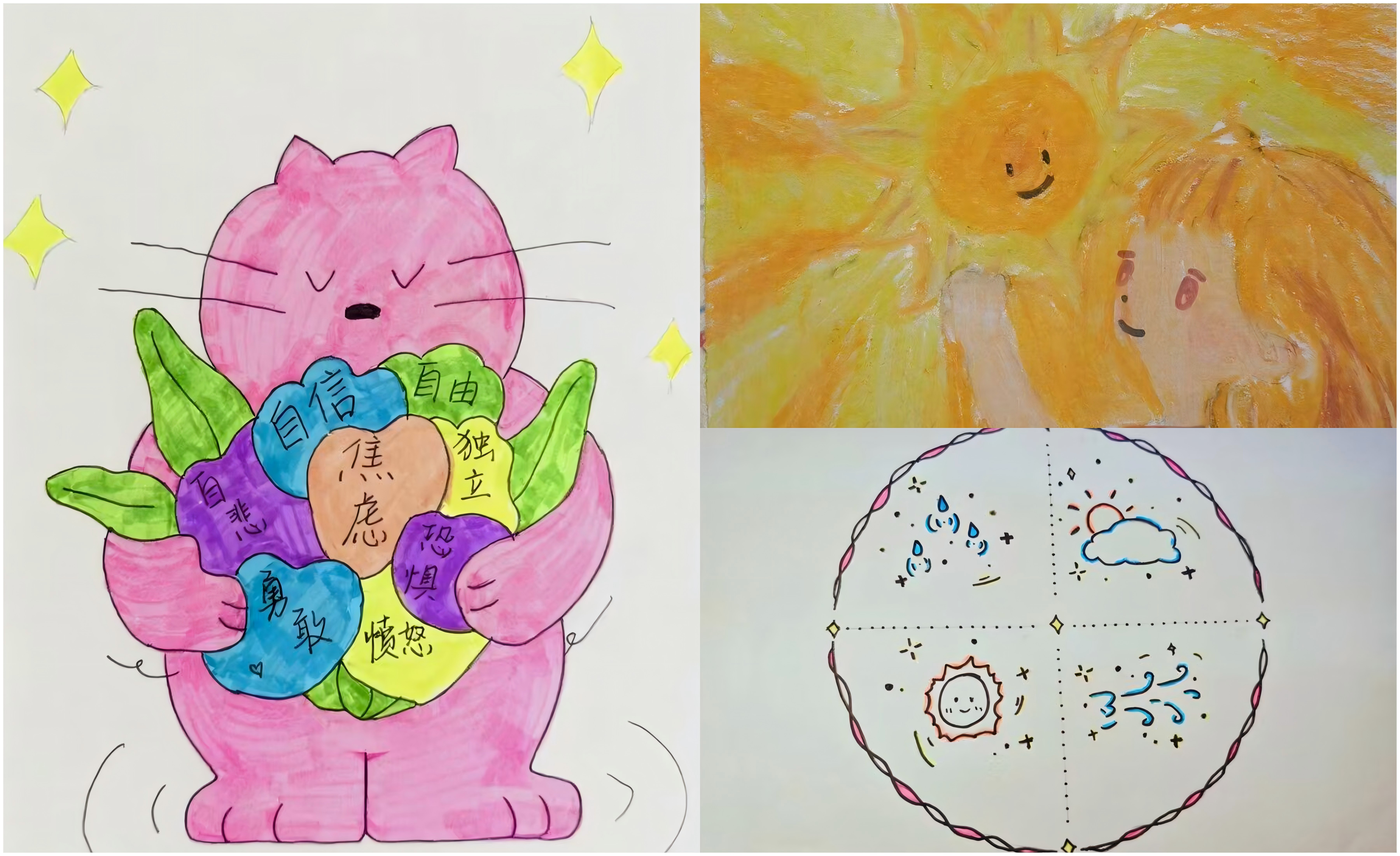 征集期结束后,从“情绪表达完整性”“创作创意性”“疗愈内涵传递”等维度对参赛作品严格筛选、公正评审,最终评选出 3 份优秀作品并授予一、二、三等奖。其中,一等奖作品以女孩紧握太阳的画面,用温暖色彩与细腻笔触诠释“追寻光”的主题,传递“珍藏美好、勇敢前行”的力量;二等奖作品以“圆形”为情绪载体,借“雨过云散、太阳重现”意象,传递“情绪会自行调节”的理念;三等奖作品以粉色猫咪为核心,通过猫咪怀抱含多元情绪的花朵,呼吁正视并接纳所有情绪,成就真实完整的自我。