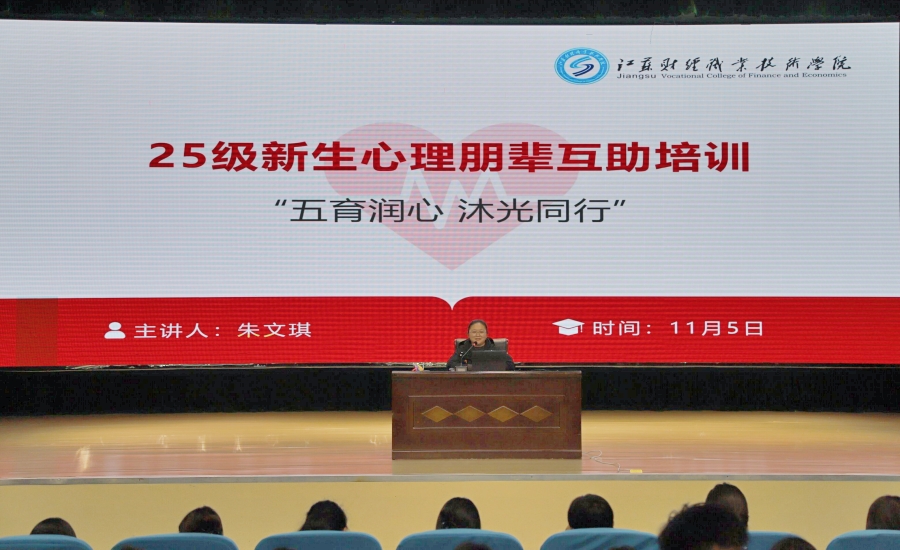 为织密筑牢校园心理健康防护网,提升新生班级学生骨干的心理助人意识与能力,11月5日下午,我校在图书馆多功能报告厅成功举办了以“五育润心,沐光同行”为主题的2025级新生心理朋辈互助培训。本次培训由学生处大学生心理发展支持中心专职教师朱文琪主讲,面向全体2025级新生班级的心理委员、班长、副班长及学习委员。