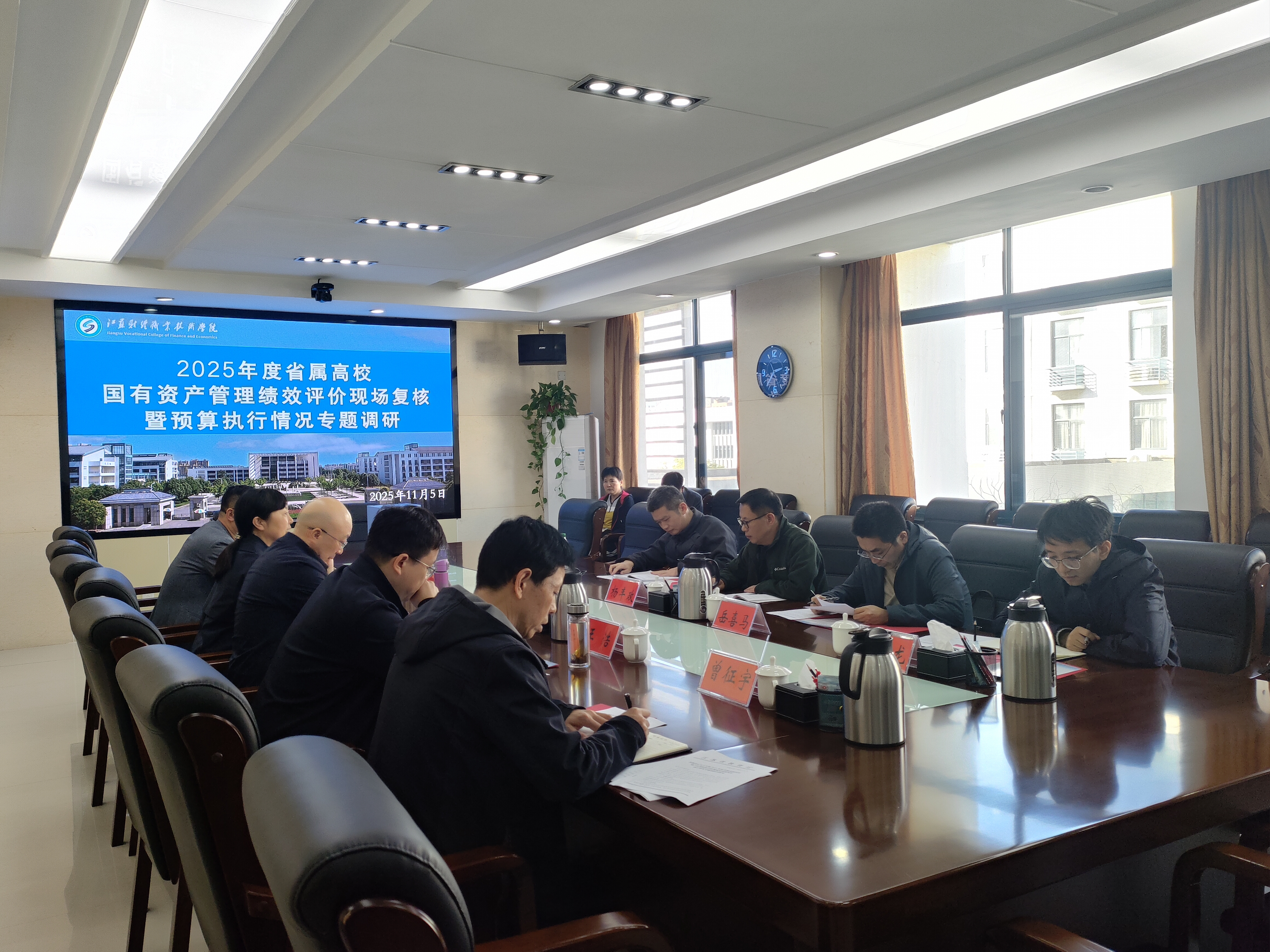 11月5日下午,由南京信息工程大学国资处处长杨丰政、省教育厅财资处处长朱武等4位专家组成的工作组莅临我校,对我校国有资产管理绩效评价进行现场复核并对预算执行情况开展专题调研。学校党委副书记、校长张维,副校长王丹出席会议,财务处、国资处等相关人员参加会议。会议由王丹主持。