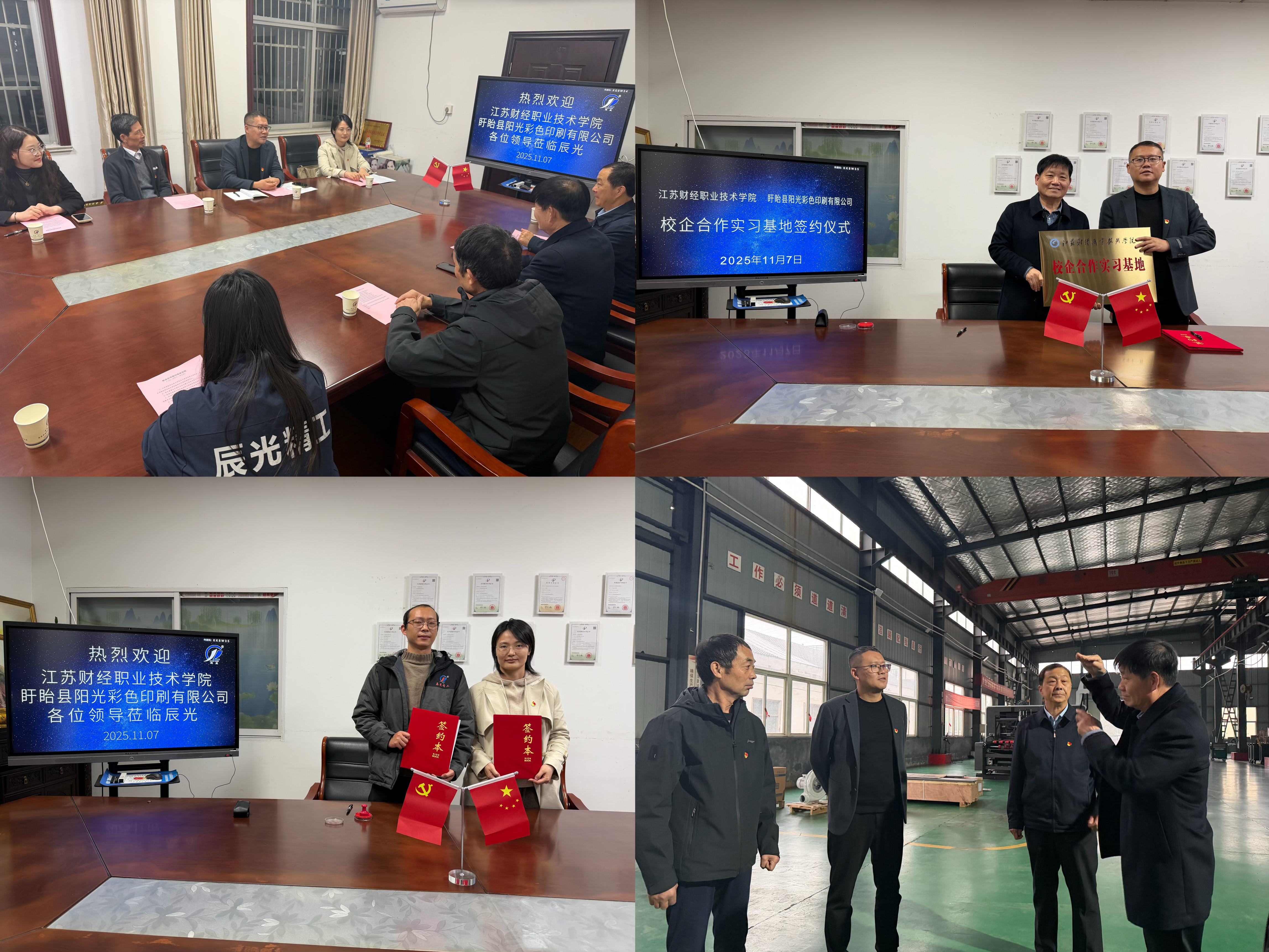 为进一步推动校企协同育人、产教融合及党建引领下的高质量就业,11月7日下午,商务英语学院赴江苏辰光精工设备有限公司、盱眙县阳光彩色印刷有限公司开展访企拓岗活动,并举行校企合作与党建共建签约仪式。本次活动由商务英语学院院长冯伟带队,学院教工党支部组织委员杨竹影、教师代表和润廷、于正航参加。