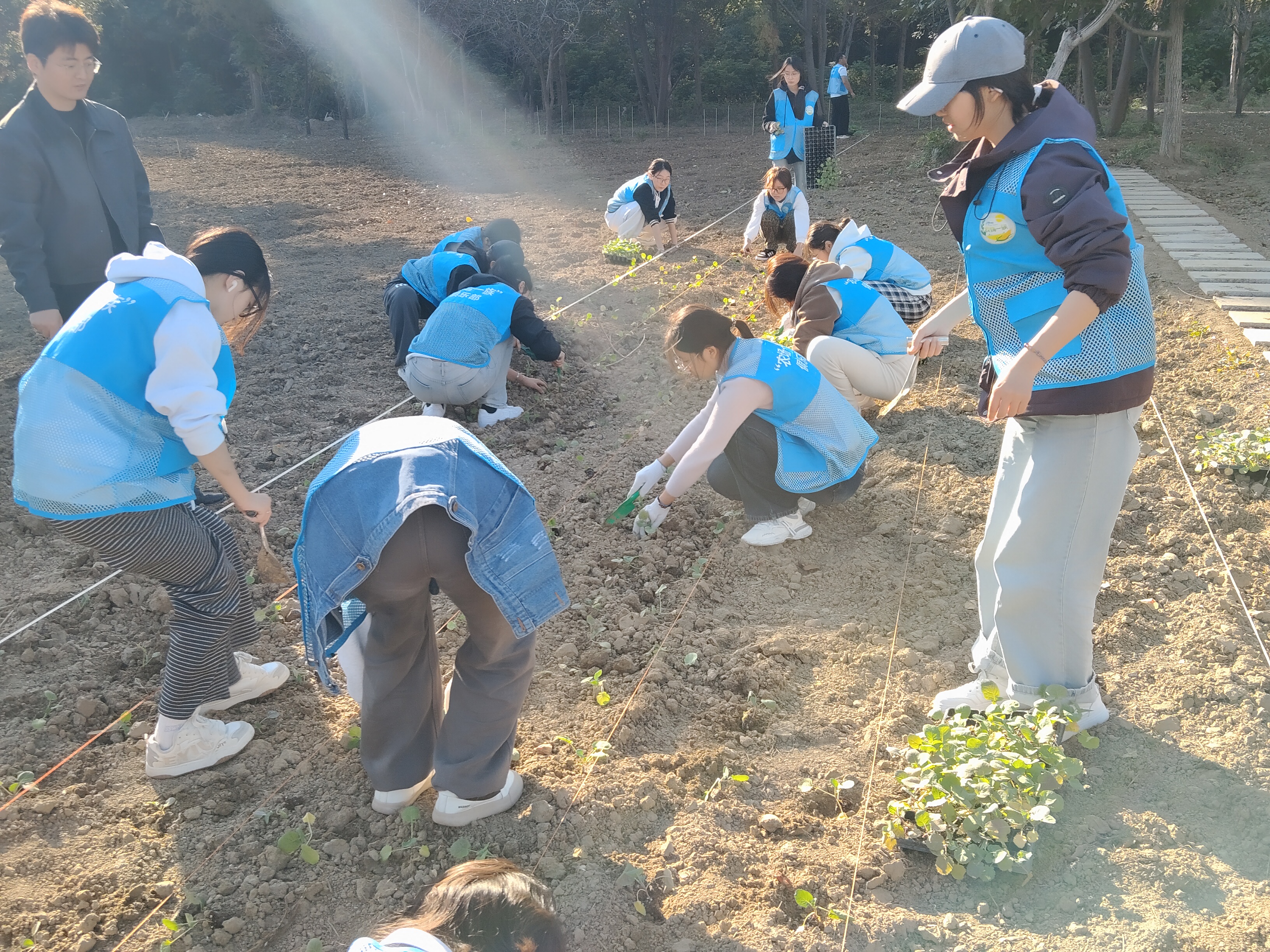 11月5日下午,“农场一族”社团在校园农场南侧地块开展了一场以“金色花海,播种未来”为主题的播种实践活动。社团指导老师林森、郭琪菲以及社团近30名成员参加活动。