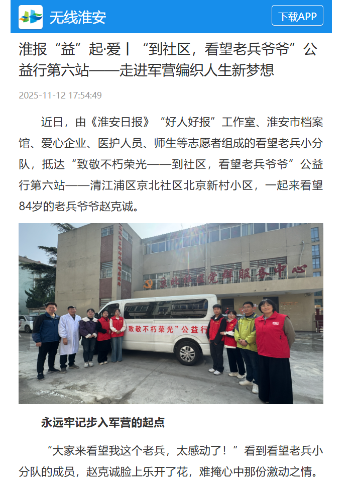 【无线淮安】淮报“益”起·爱丨“到社区,看望老兵爷爷”公益行第六站——走进军营编织人生新梦想