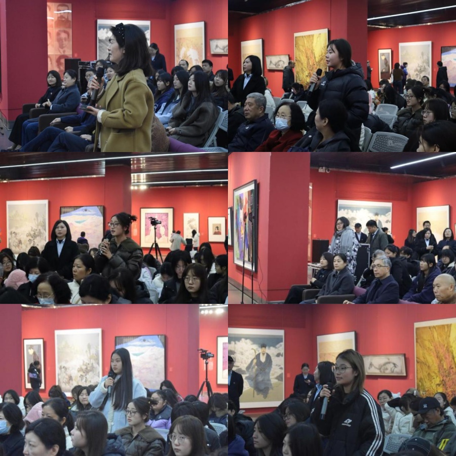 在交流环节,同学们就如何平衡传统工笔画与当代创新表达、运河文化如何具体转化为创作素材等困惑向艺术家们踊跃提问。艺术家们一一作出了详细而深刻的解答,现场互动热烈。学生纷纷表示,此次“面对面”交流不仅让他们对工笔画的当代探索有了更清晰的认识,更从艺术家谆谆教诲中获得了宝贵的精神动力,坚定了他们扎根生活、深挖传统,在设计道路上不断探索前行的决心。