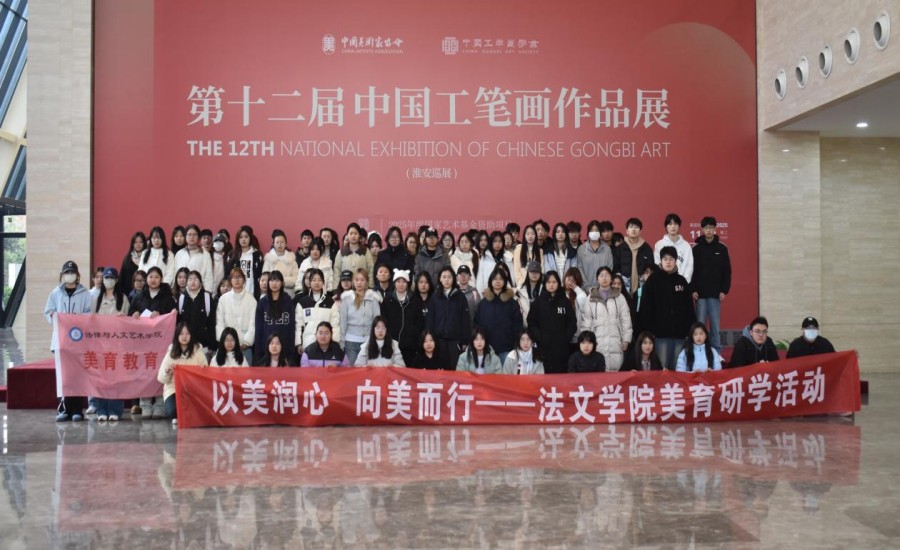 为深化美育教育,让课堂教学与艺术实践深度融合,11月23日上午,江苏财经职业技术学院法律与人文艺术学院25级数字媒体技术与视觉传达设计专业全体学生前往淮安美术馆参加了“淮安·面对面——运河文化视域下的工笔画创作分享会”。并参观了备受瞩目的“第十二届中国工笔画作品展”,在传统工笔与现代设计的碰撞中探寻创作真谛。