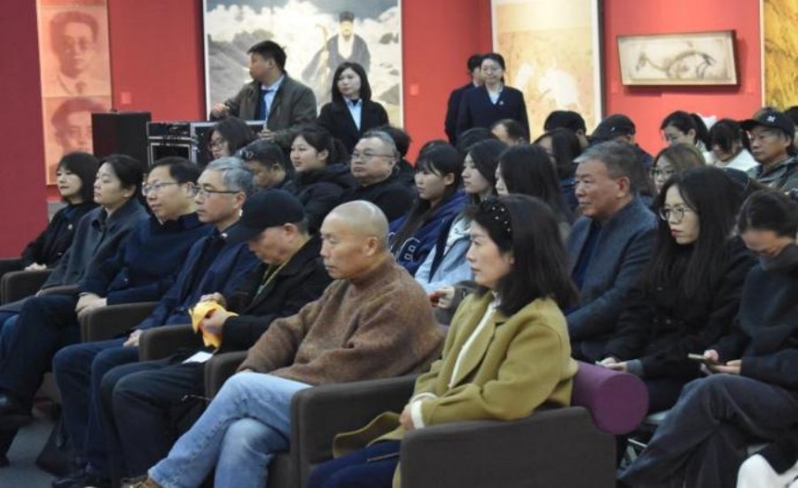 观展结束后,同学们移步第一展厅,参加了精心组织的“淮安·面对面——运河文化视域下的工笔画创作分享会”。本次分享会特邀六位深耕工笔画领域、兼具理论深度与创作实践的知名艺术家齐聚一堂,结合自身丰富的创作经验,为在场学子带来了一场思想与智慧的盛宴。多位艺术家不约而同地强调了立足本土、深挖文化根脉对于艺术创作的重要性。对于参展的学生而言,此次高规格展览与高水准座谈的结合,是一次极为珍贵的学习机会。为青年学子提供了开拓视野的绝佳平台。