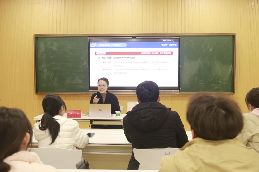 辅导会上,纪元从“如何认识‘挑战杯’”、“什么是高质量的‘挑战杯’作品”以及“如何做好路演与答辩”三个角度进行了深入浅出的解读。纪元强调“实践育人”是挑战杯与其他竞赛的核心区别,在遵循科学性、先进性、现实意义三大原则的基础上,从实践中发现问题,经过研究论证再应用到社会实践中去。