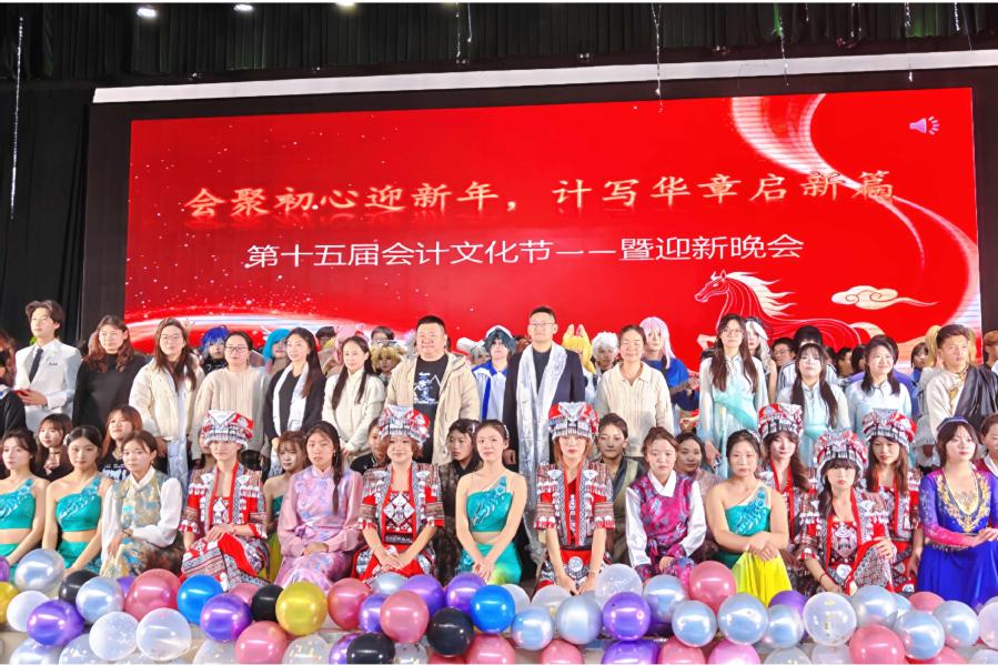 12月17日,以“‘会’聚初心迎新年,‘计’写华章启新篇”为主题的第十五届会计文化节暨迎新晚会在图书馆报告厅精彩上演,会计学院党总支书记罗斌、副院长郭晓明、季婧以及2025级全体师生齐聚一堂,共赴这场青春与梦想交织的视听盛宴。