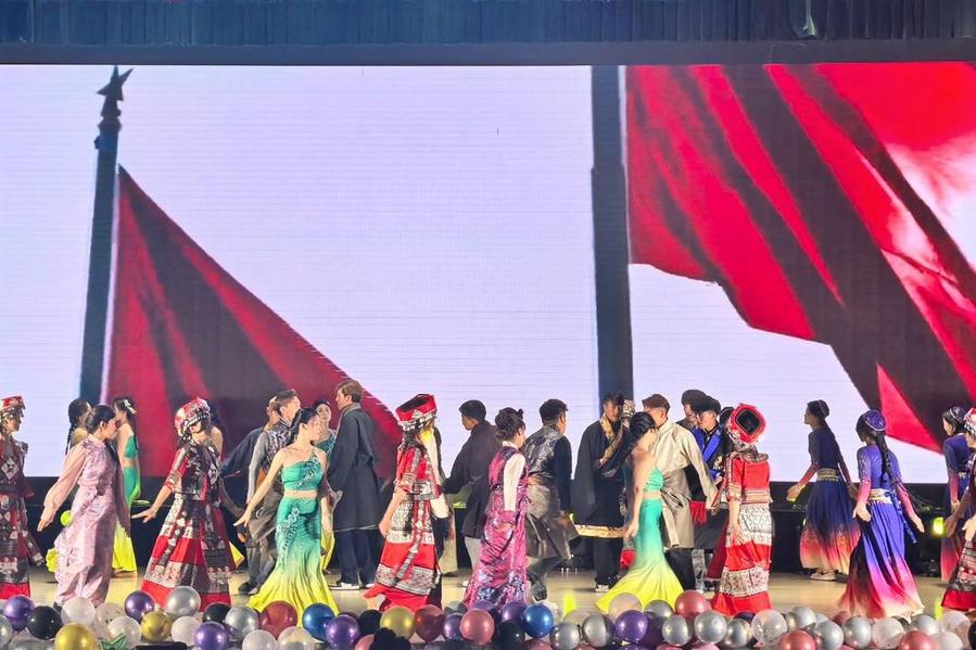 晚会尾声,器乐舞蹈《大鱼》将乐声与舞姿完美融合,意境悠远;Cosplay秀《异世界走秀》创意十足,展现学子的奇思妙想;民族舞《民族一家亲》以绚丽的服饰和灵动的舞步,诠释了民族团结的美好寓意,为整场晚会画上圆满句号。
